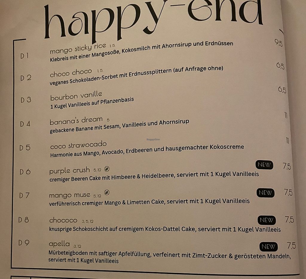 New dessert menu
