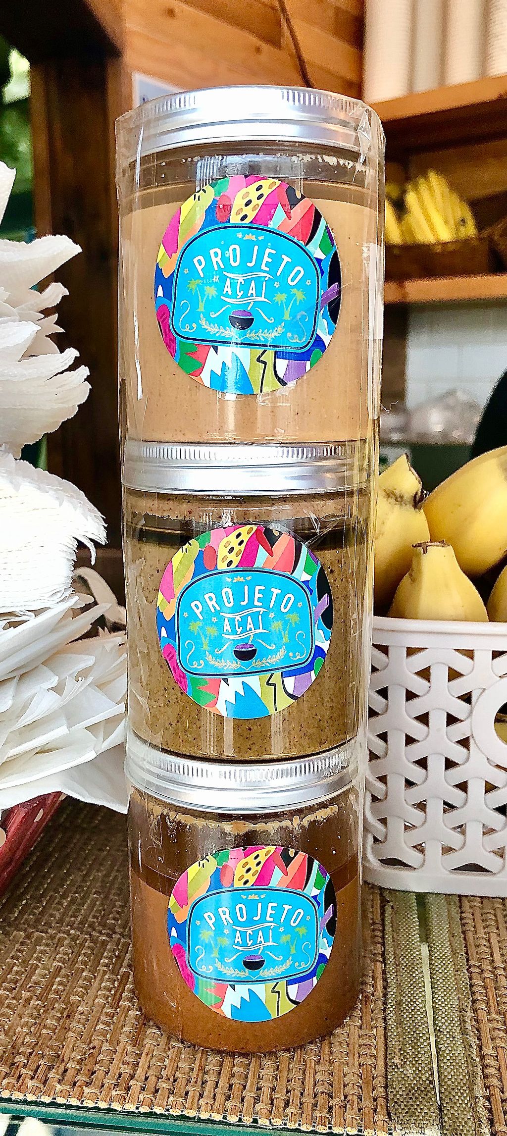 Variety of vegan açaí and vegan topping
