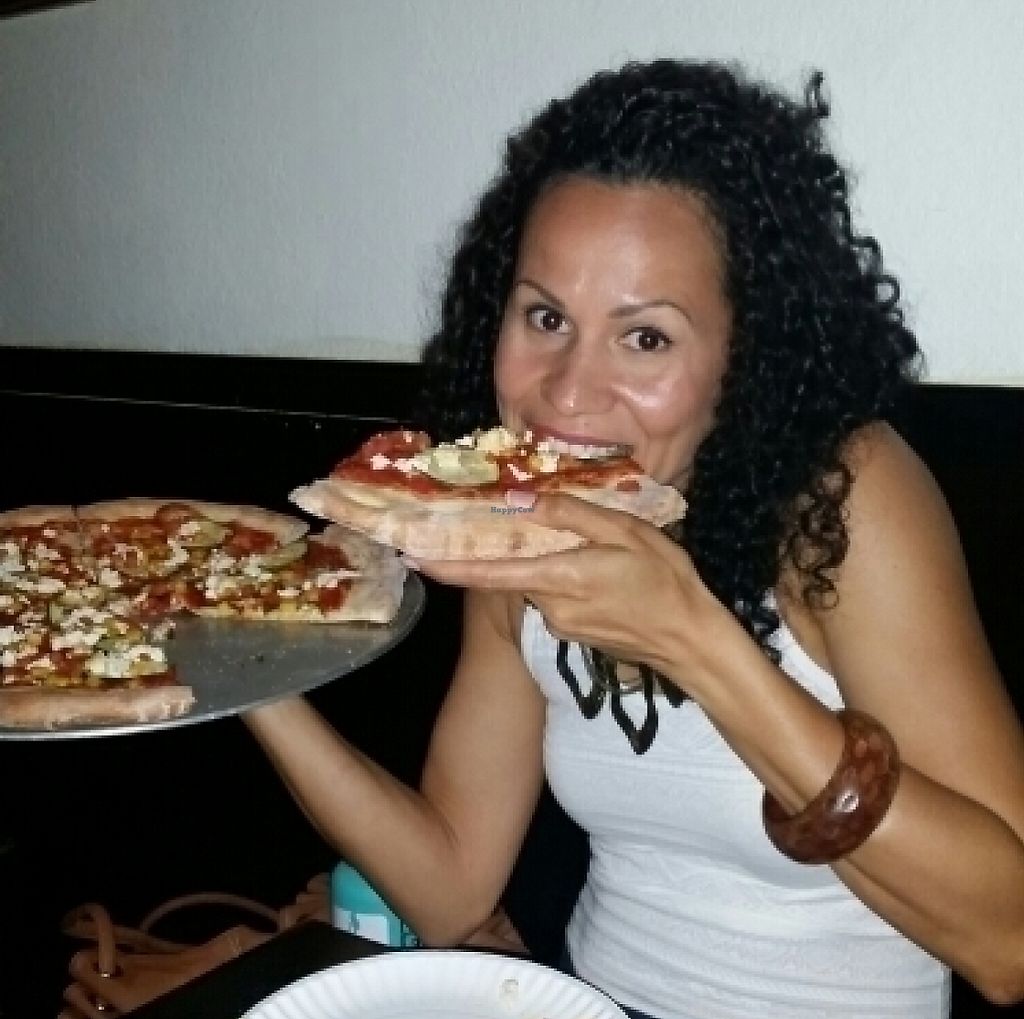 Serves meat, vegan options available. Pizzas can be made vegan with option to add vegan cheese (for a charge), and usually has a vegan slice of the day. Also serves sandwiches, salads, and bar drinks. Small place in an alley, next to the HPU campus. Removed February 2022 - no longer offering adequate vegan options.