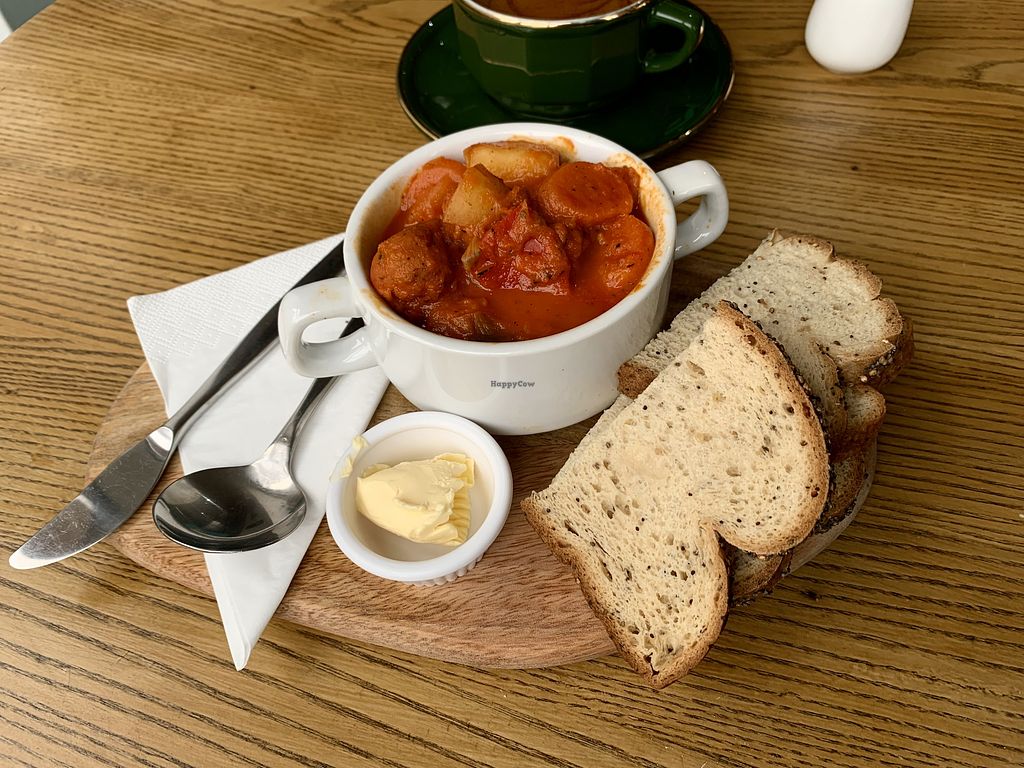 Baked potato w/ minted mushy peas (GF) & soup of the day