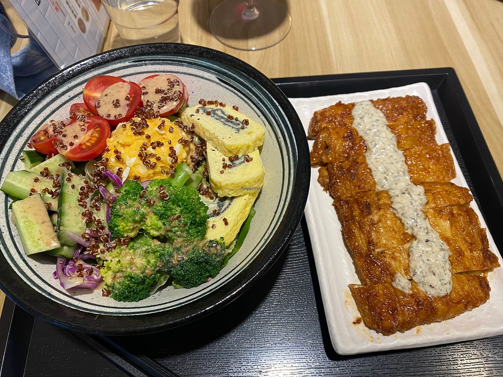 Choose your protein. The vegan/vegetarian option is tofu skin with you…