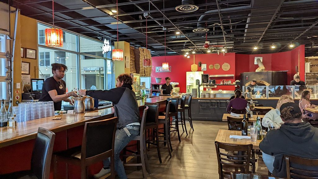 Serves meat, vegan options available. Pizza joint with a Daiya vegan cheese option for all pizzas. Uses separate utensils for vegan pizzas. Reported July 2022 that some crusts contain honey - please check with server. Removed December 2022: Limited vegan options.