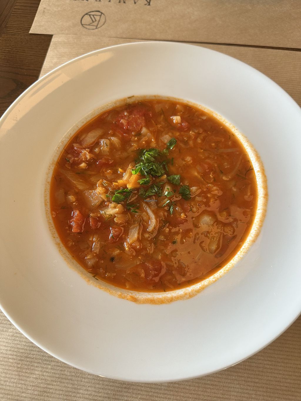 Wunderschön eingerichtetes Lokal mit sehr freundlicher Bedienung. Das herzhafte Menü scheint täglich zu wechseln, weswegen sie nur 1-2 vegane Gerichte hatten, von denen eins jedoch sogar glutenfrei war. Wir hatten eine türkische Tomaten-Linsen-Suppe, die sehr aromatisch und lecker war. Auch die Limode war gut und hätten wir gewollt, hätte es auch einen veganen Kuchen gegeben! Es gibt kein englisches Menü, allerdings sind vegetarische, vegane und glutenfreie Speißen klar gekennzeichnet.