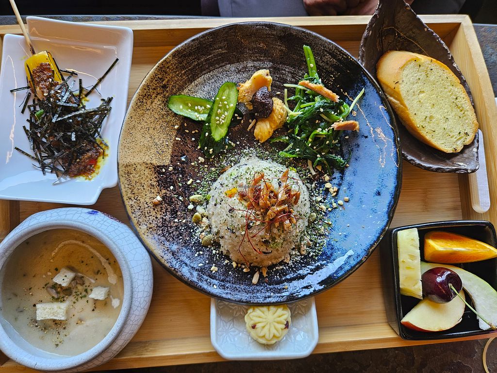 - Apparently many dishes can only be ordered as part of a set, and the set cannot be veganized (fried rice, starter, fruits, desert were vegan; bread and soup were not)
