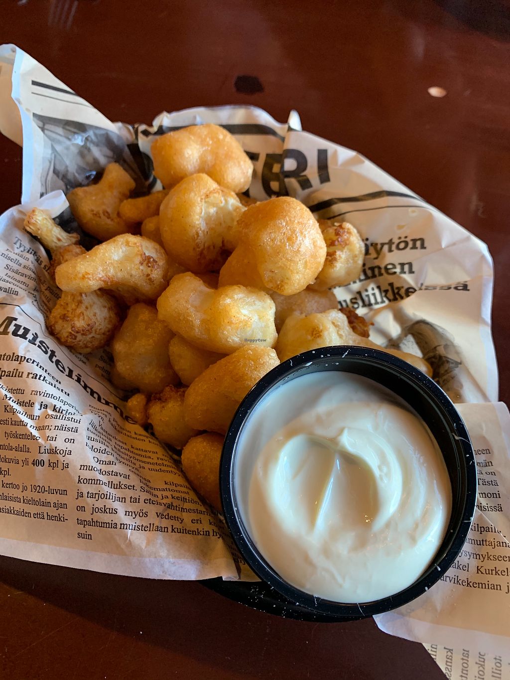 Pubi seems like an oasis in the middle of Ivalo. The restaurant doesn’t look much from outside but inside it’s nice. Pub food and beer, what more you can wish for? They were out of vegan kebab at the time of our visit, but we had tasty cauliflower wings with vegan mayo and veggie pizza with vegan cheese.