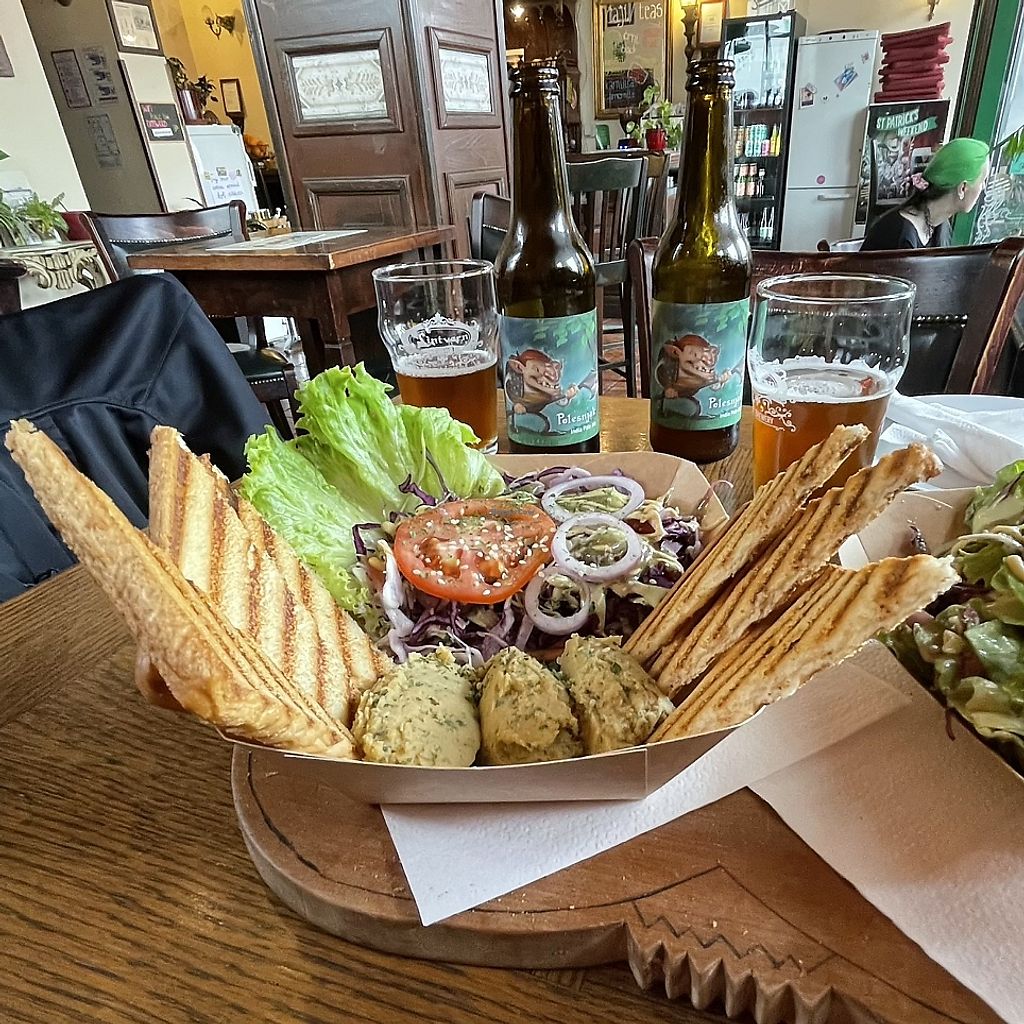 Tasty salad, toast and smashed bean pate dip thing!