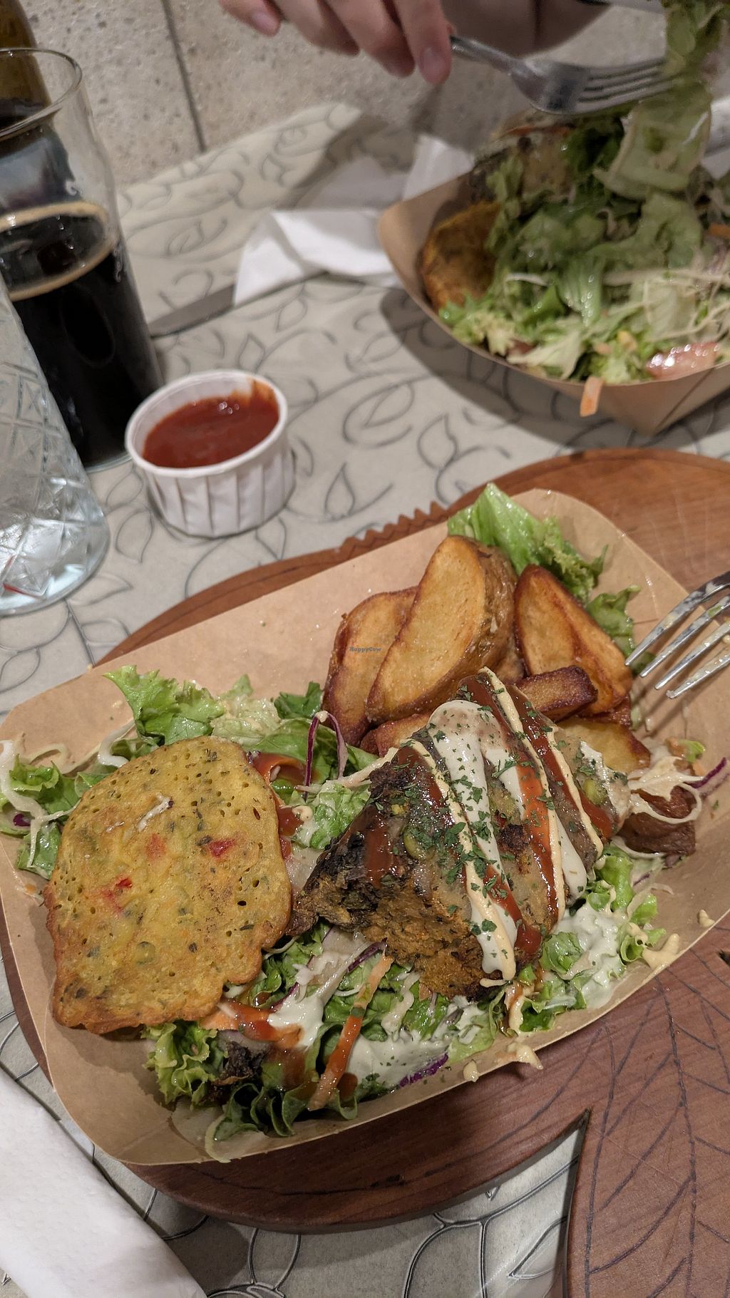 Shared wedges and chickpea fritters (kids menu) + potato pie and salad