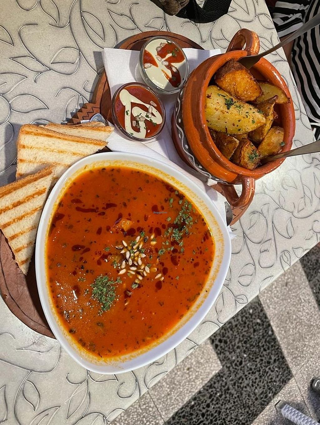 Tomato soup and potato wedges