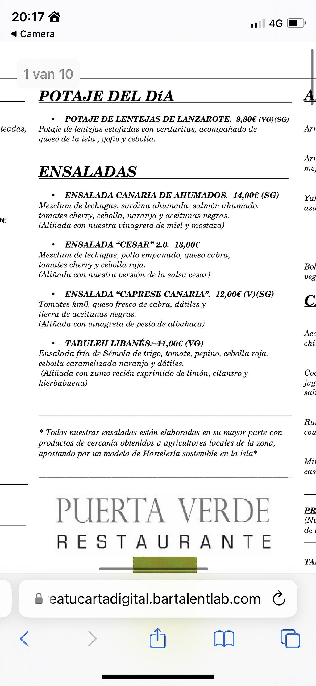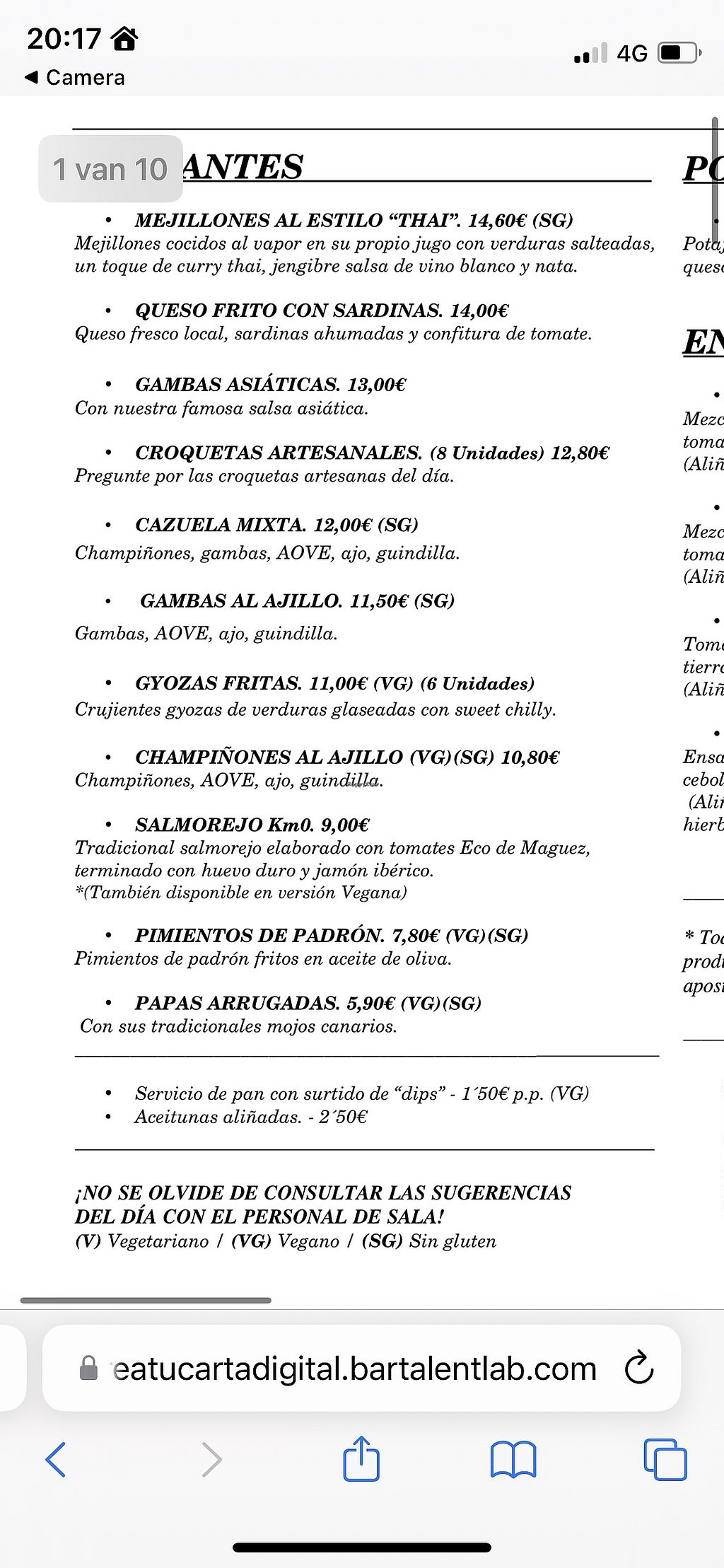 Dessert menu