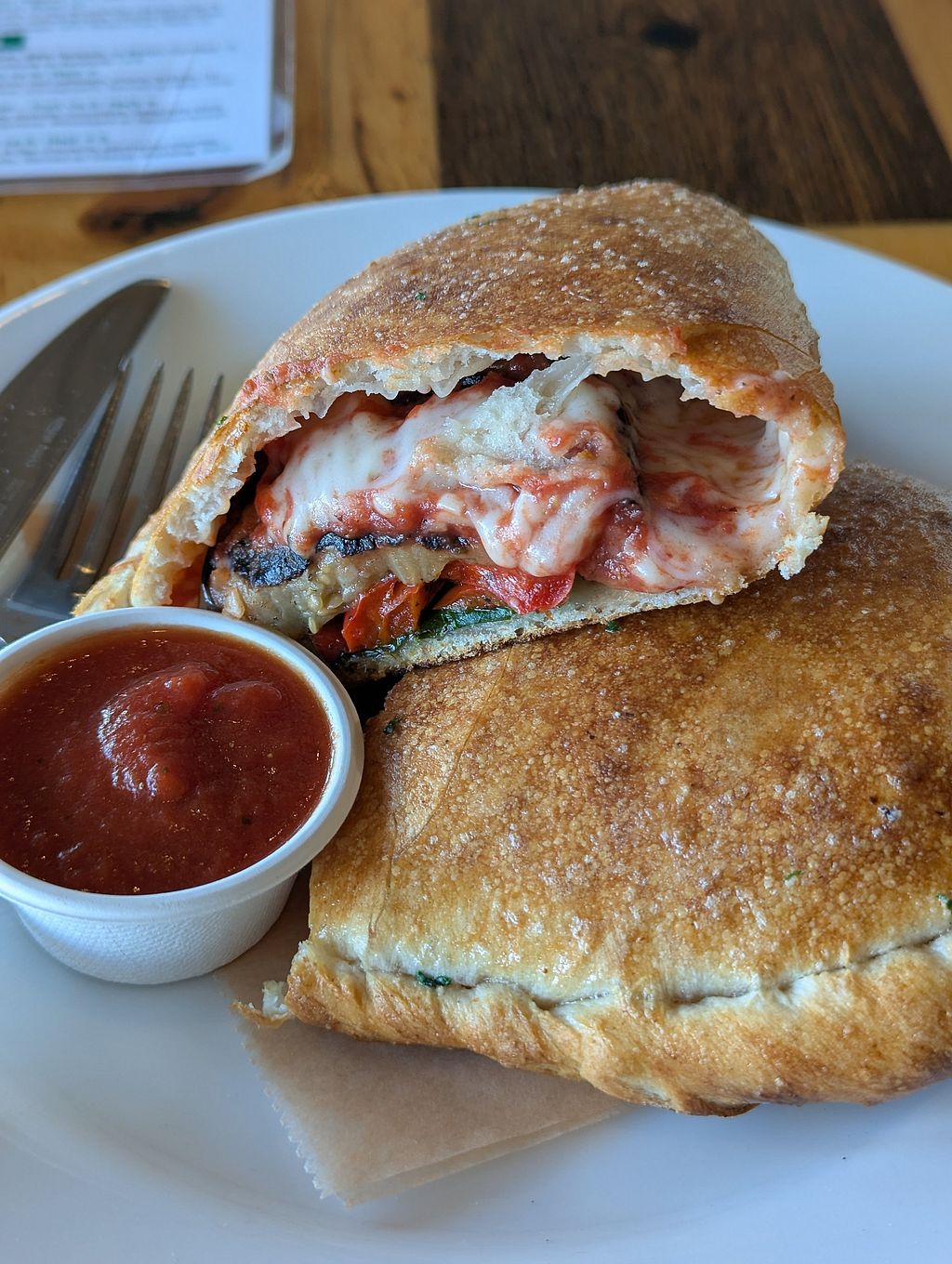 Fresh foods that taste delicious. I loved the eggplant calzone. We were in Hadley for a tournament so, I picked up a few to-go items to have at the field. Casual atmosphere. Super tasty vegan and vegetarian options