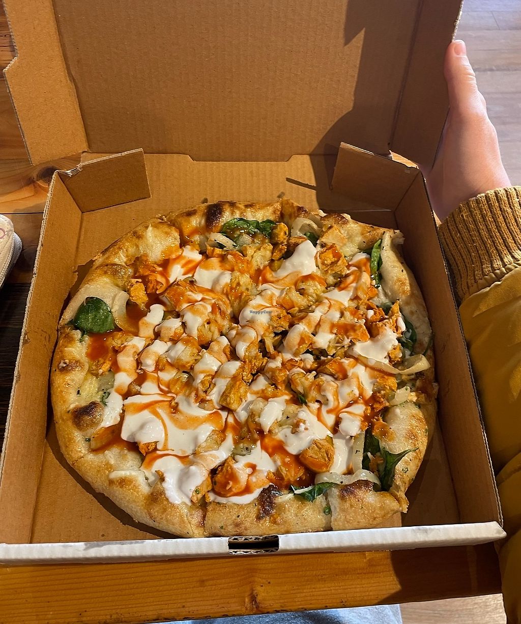 Thanks for dropping us a review and a photo of the scrumptious Buffalo "Chicken" Pizza!