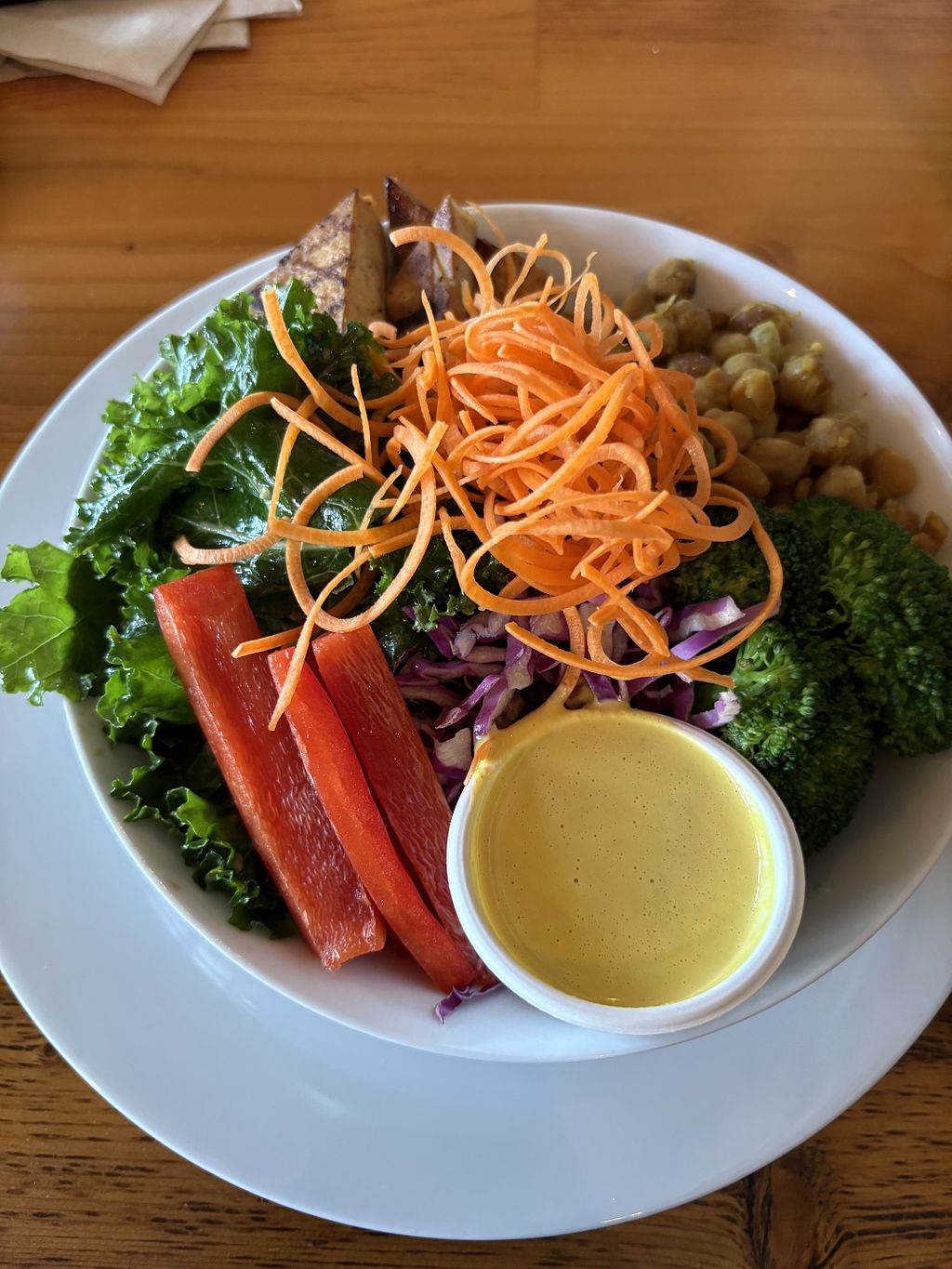 This is my "go-to" vegan place whenever I want to eat vegan. Food is absolutely delicious and the staff are very friendly and helpful. The bowls are one of my favorites and I sometimes will pick up a delicious smoothie on the run! The warm orzo latte is my favorite in the cool months and the chai chaga iced latte is my awesome hot summer drink!! Living on a fixed income my only con would be the prices. But like everything else it's the cost of doing business in these times and the cost of eating healthy unfortunately.
