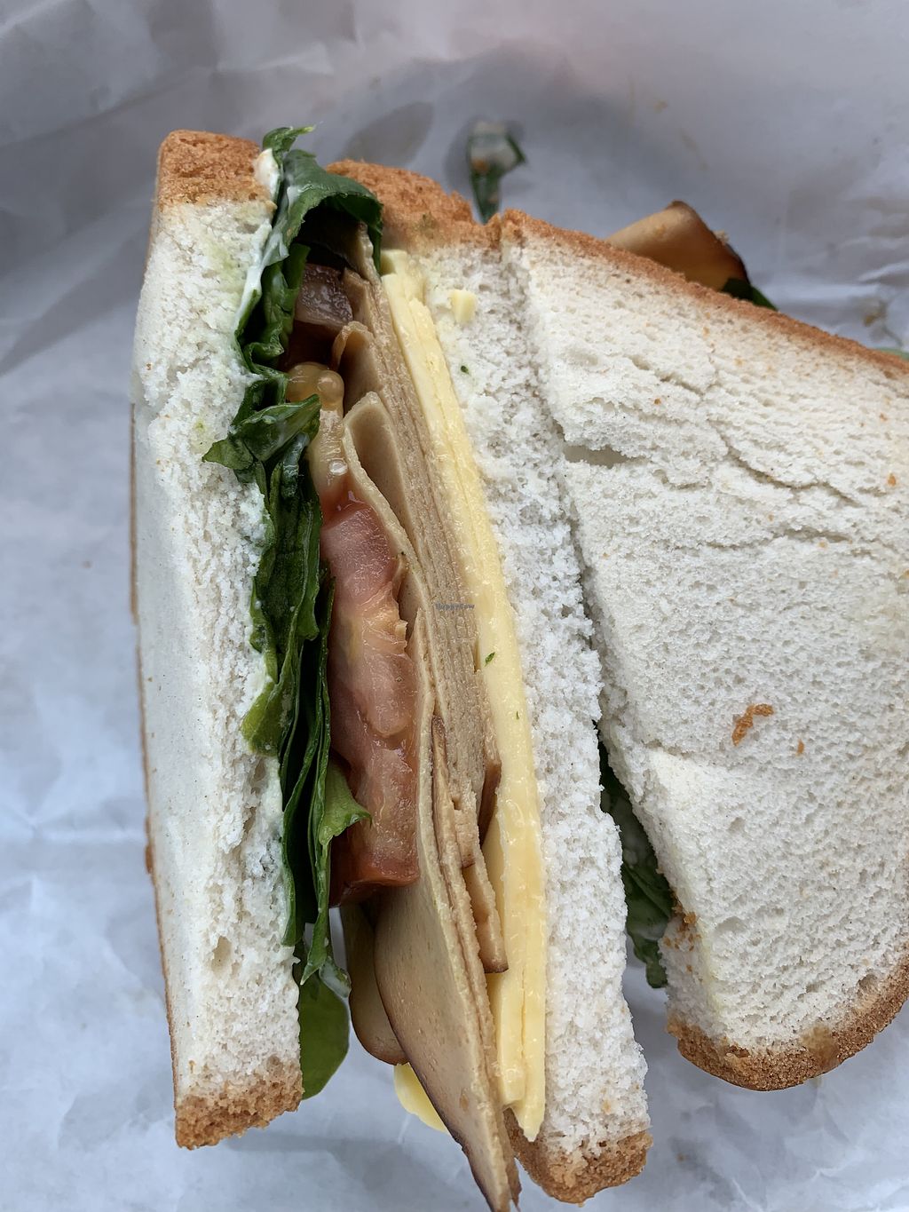 Tasty vegan lunch meat, vegan cheese, vegan mayo, tomato, and spinach …