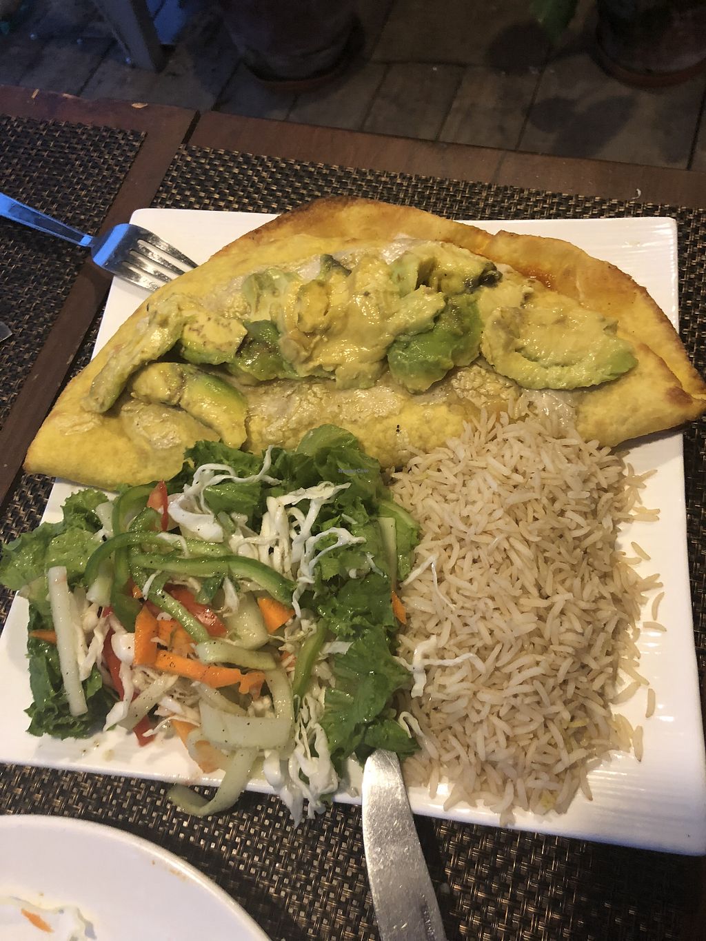 We had the vegan pizza and the vegan enchilada. Both were nice and the staff was really friendly. The vegetable on the vegan pizza were not fully cooked (especially the green peas that were still hard which was a pity). But otherwise a really nice place to eat for vegans.