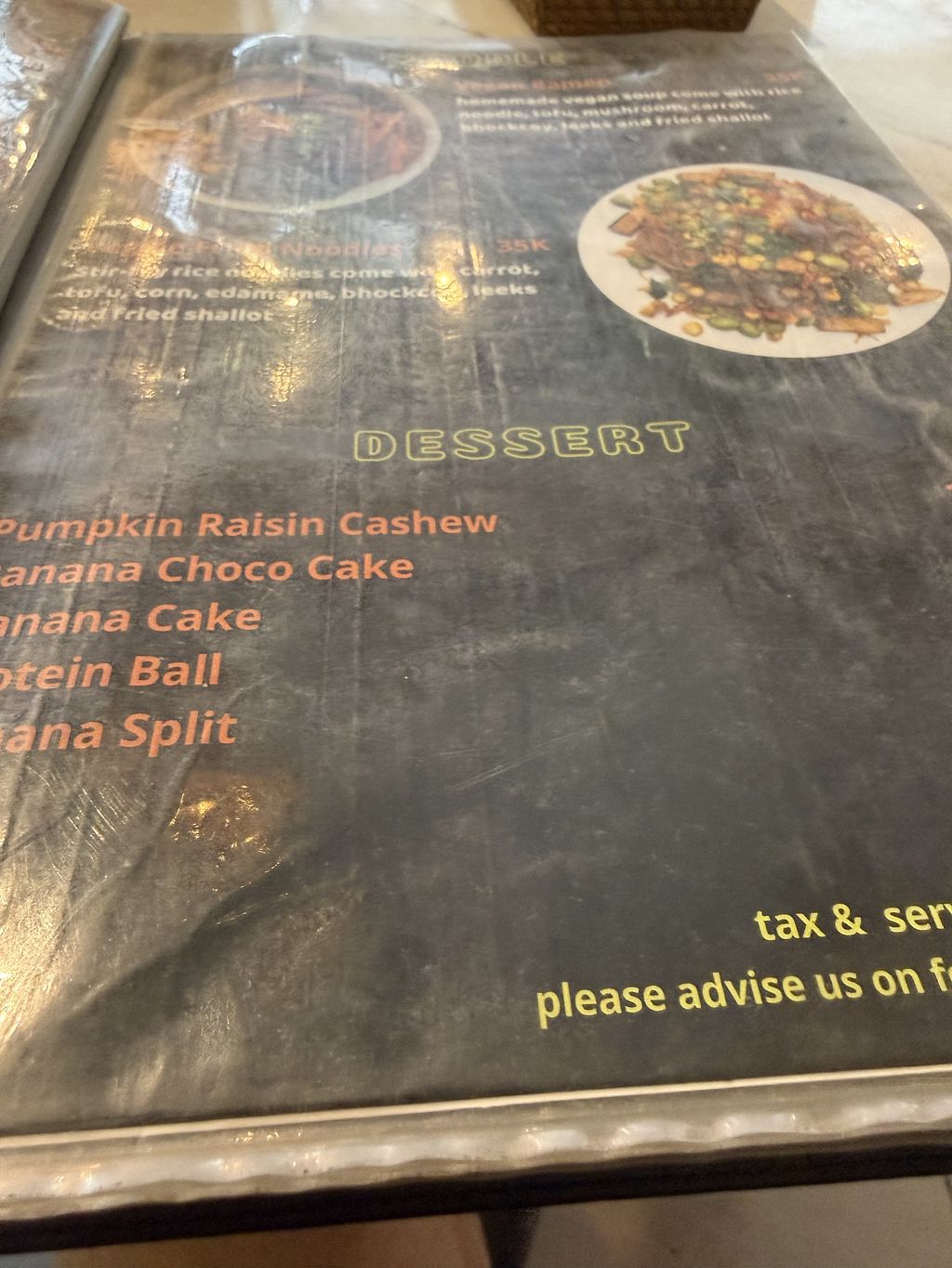 The food was great a Pumpkin & Beetroot, really healthy and filling. We had a raw vegan nacho bowl, plate of dips and bread and a tofu dish. Only strange thing was there was no rice with the hot dishes, only mashed potatoes but my daughter was able to switch the potato out for rice on request. The food is very reasonably priced and the cafe is nicely decorated. The only downside is that it is on an incredibly busy intersection, where scooters need to rev up to get up the hill. We found it so noisy that it killed conversation and we hurried our meal to get away from it.