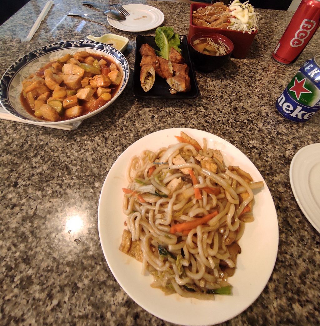 En pleno barrio chino. Tiene una carta amplísima de comida asiática en versión vegetariana, con platos de pescado vegano, carnes, fideos, arroces... Además cuenta con un espacio de venta de productos vegetarianos y helados. El precio es ridículo, puedes comer muchísimo por muy poco dinero (creo que lo de mi foto fueron en total 15 euros). Está todo muy rico. Es un local regentado por mujeres muy simpáticas.