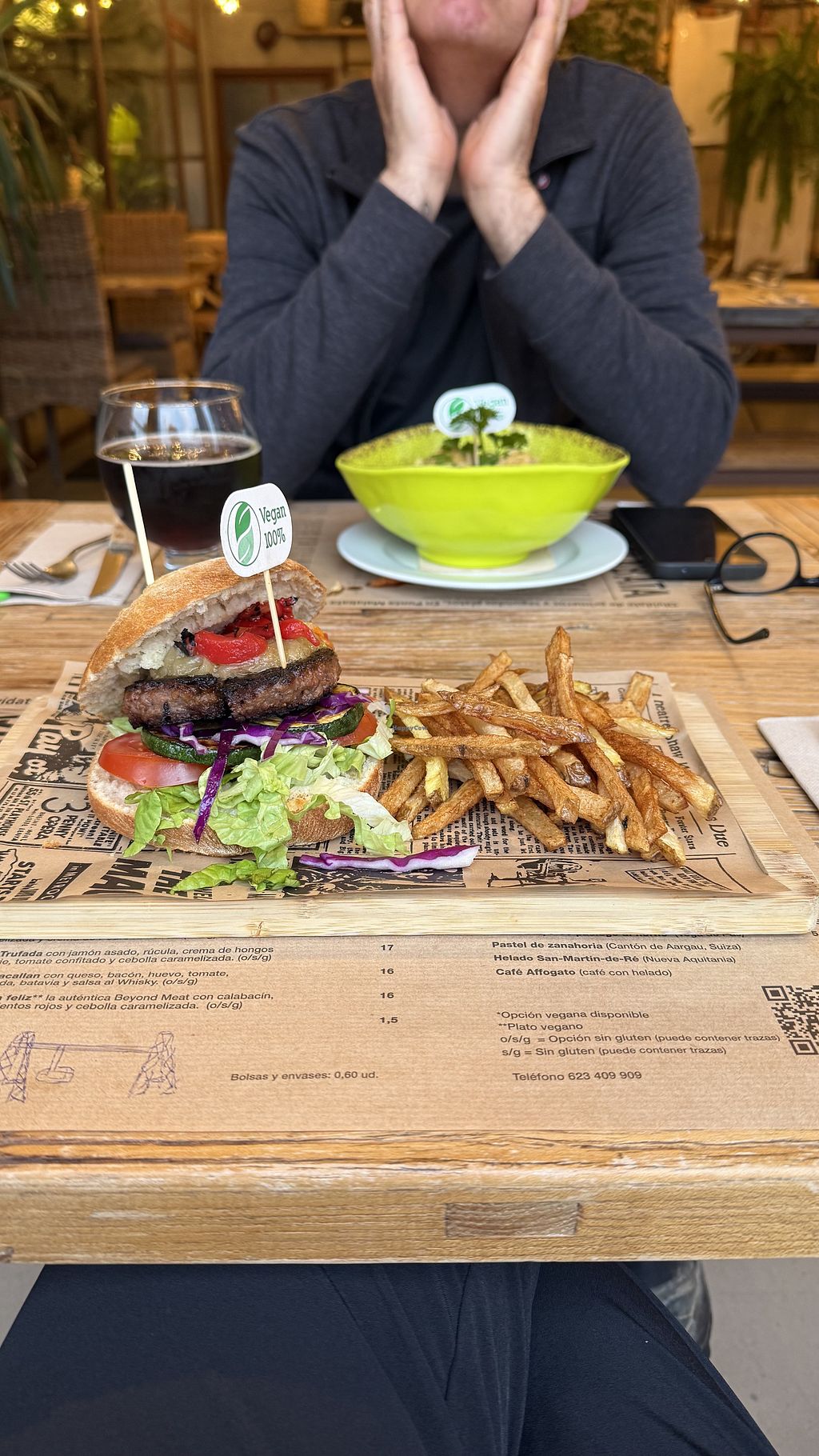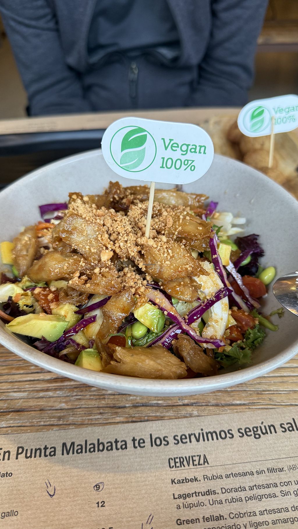 La comida está muy rica y se agradece que haya varias opciones veganas o veganizables en su carta. Una pena que no haya ningún postre.