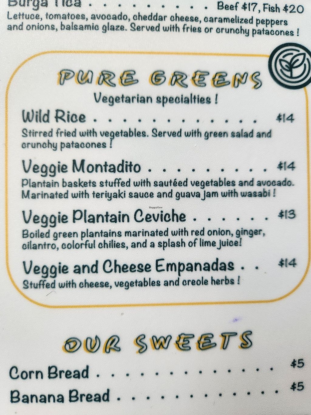 Veg options under “pure greens"