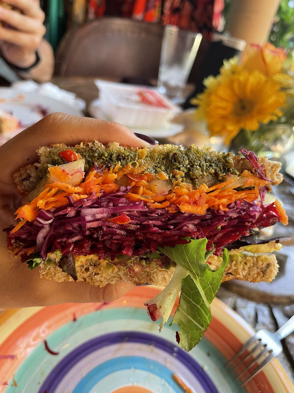 Vegan pesto sandwich with vegan mozzarella (30 pesos extra for the veg…