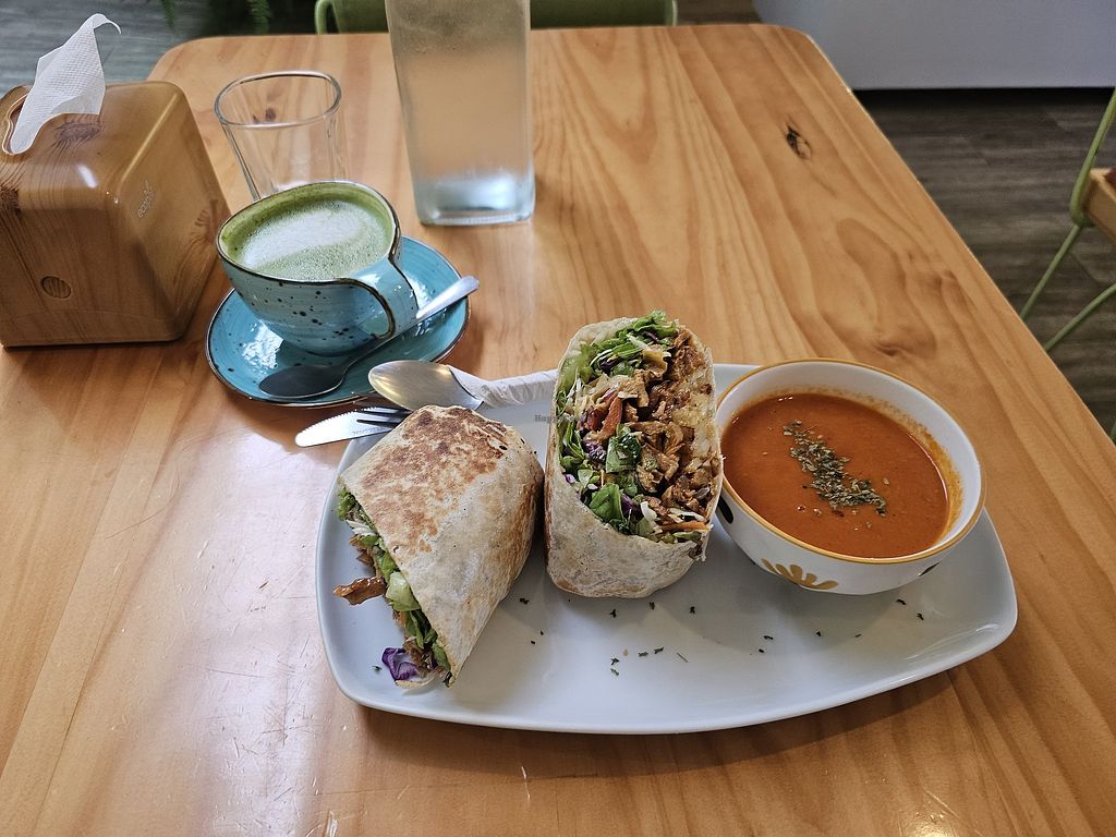 burrito chipotle con matcha! viene con una sólita muy sabrosa y cozy