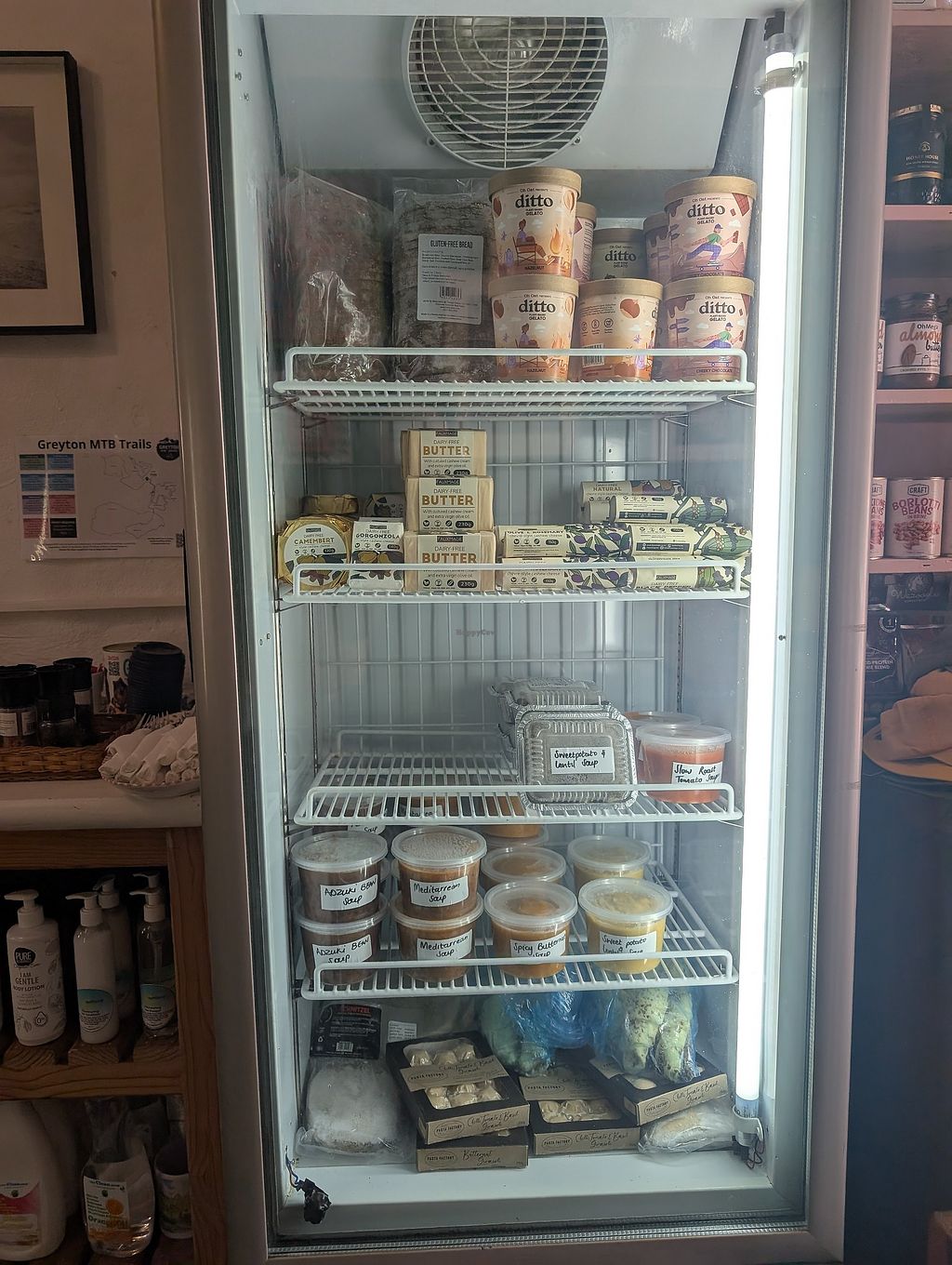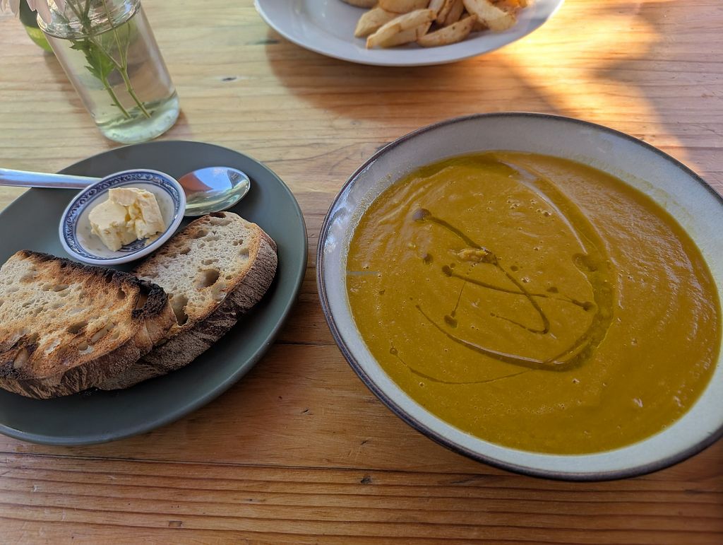 Cafe that uses fresh, local vegetables to create breakfast, lunch, morning, and afternoon tea. Serves coffee with barista soy. A retail area sells some health food items to take home. Serving dairy and eggs as of February 2023. Open Mon-Sat 8:00am-3:00pm, Sun 8:00am-1:00pm.