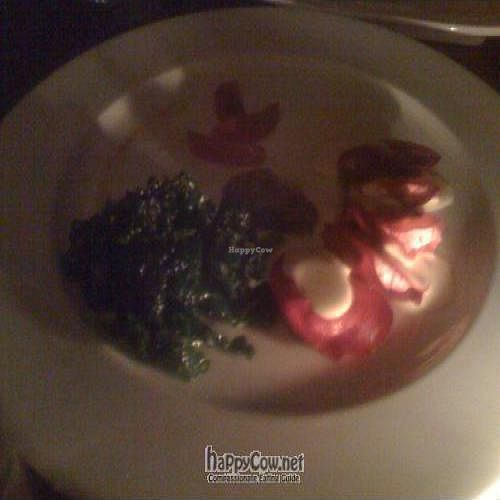 Visited on 26/06/11. We ate in the garden which was very pleasant. The food here is expensive but very, very good. This is an 'upper market' restaurant. My girlfriend had a pasta-less raw lasagna which she loved. I had courgette flowers stuffed with cashew cheese, absolutely amazing. For desert we shared a lemon 'cheesecake', again really nice. Nice wine and very professional service.
