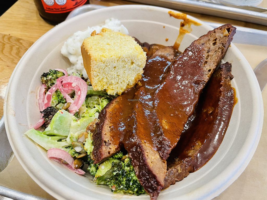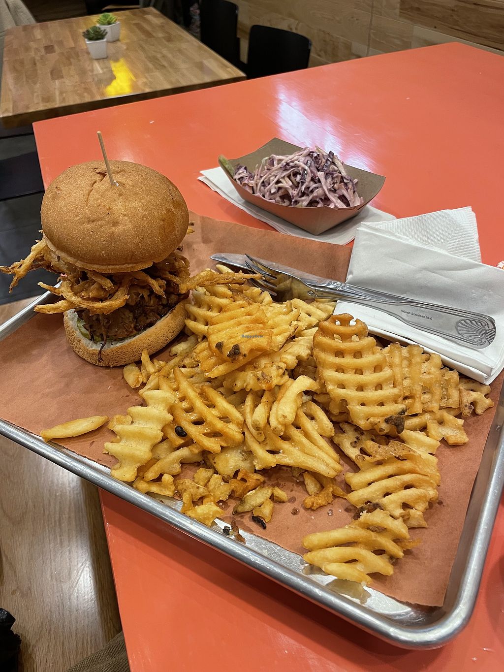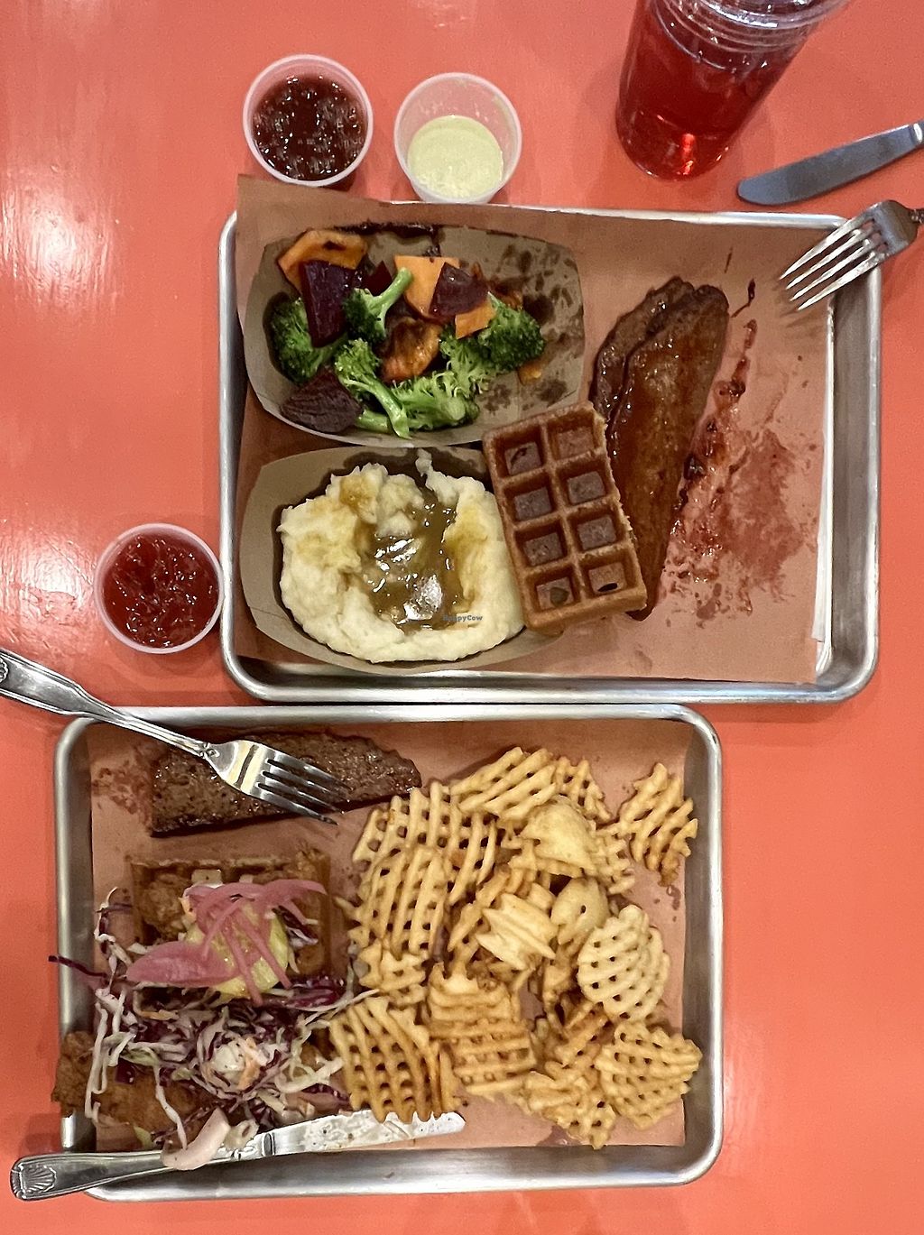 Read moreSmoked Impossible does not taste smoked. The sauce is weak and not like the sweet sauce I’m used to up here. Baked beans were turtle beans and the sauce was also not sweet. Coleslaw had no seasoning. Waffle was completely tasteless and scentless like I imagine eating with COVID is.