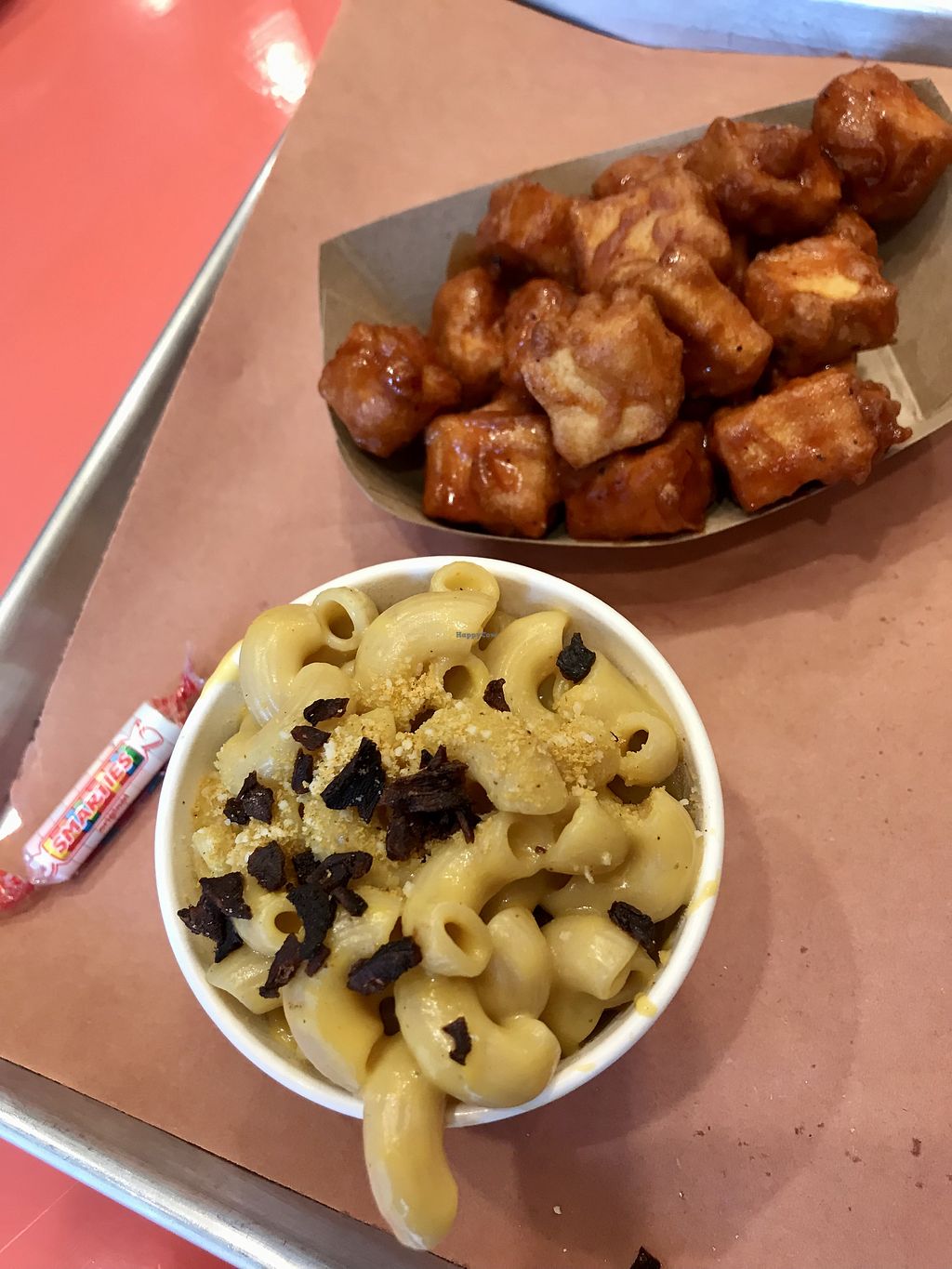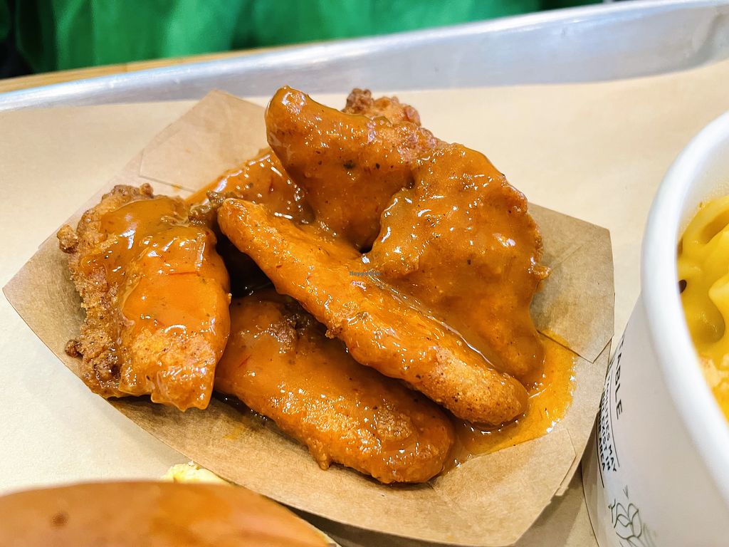 Had the buffalo chicken sandwich and Mac/Cheese. Buffalo sauce was spot on and the Mac/cheese had a sweet potato-based recipe that was one of the better plant-based cheeses I’ve had. Service was quick and friendly. A