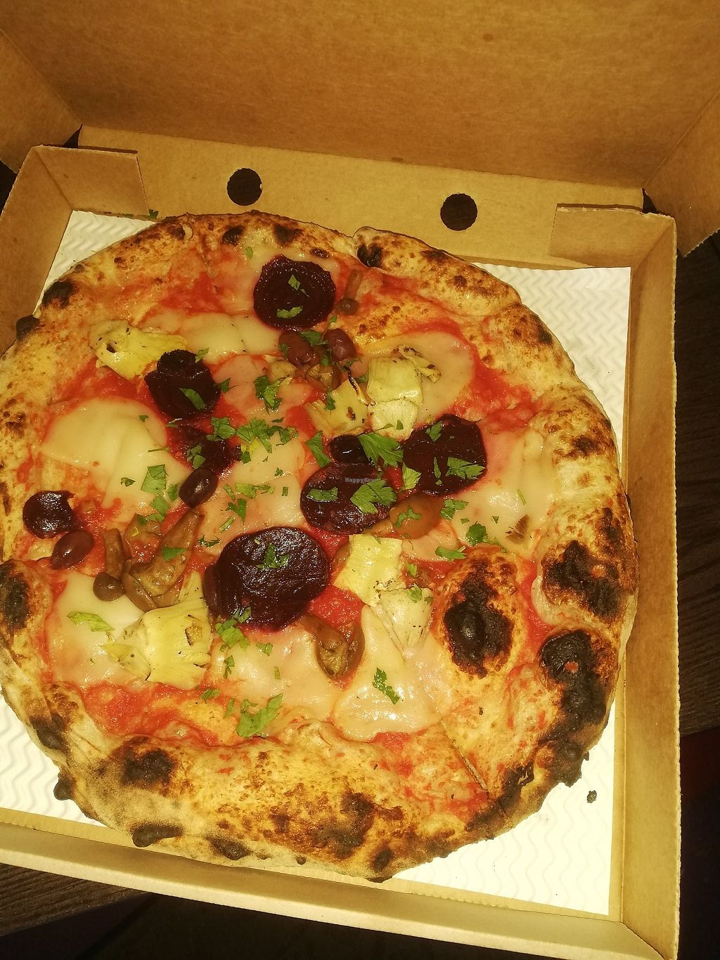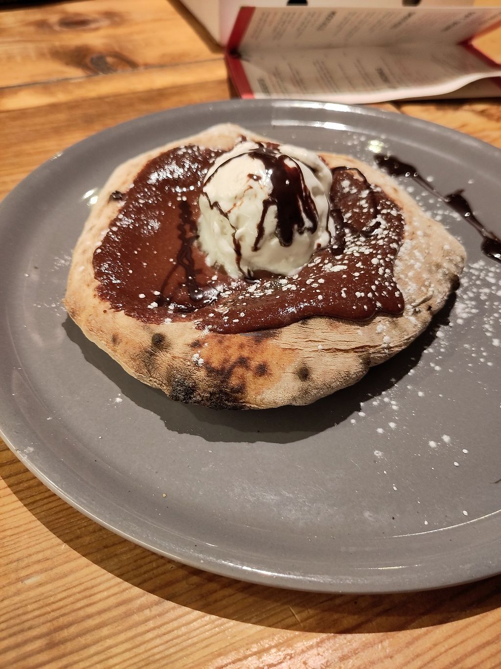Ordered the chocolate pizza to take out, after travelling down for the day and sampling as many vegan places as possible!