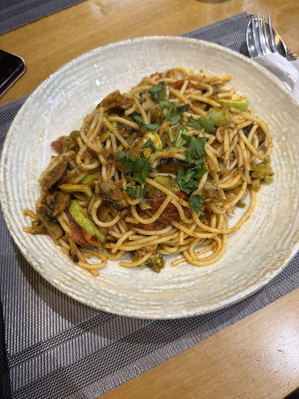 Whilst not many vegan options they were able to make a couple of dishes vegan. I had the vegetable spaghetti made vegan and it was delicious, very hearty and a large serving size. Very cheap, my meal was only around 2.50 euro