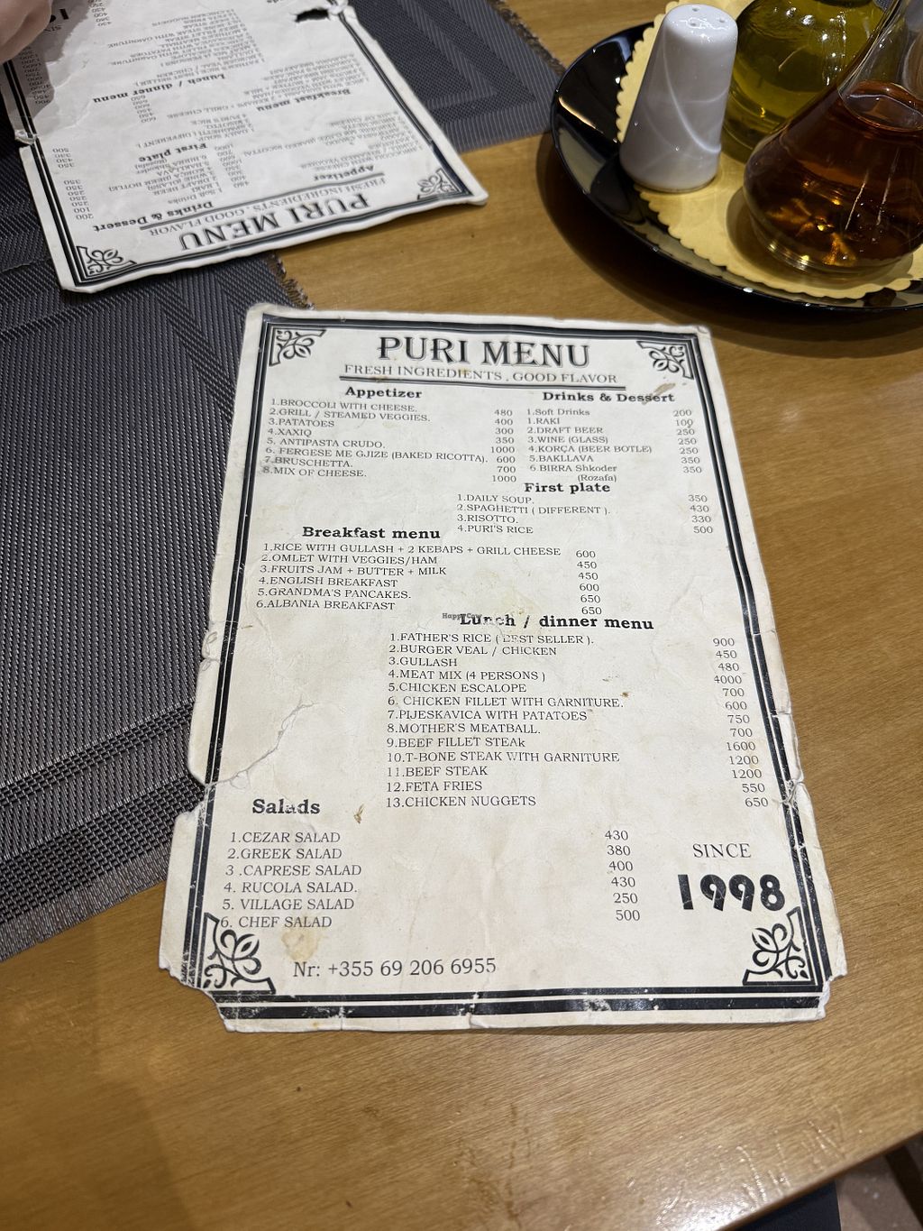 Had the Father's rice. Was tasty, but at the end of the day, it was just rice and beans and chargrilled vegetables at a whooping 900 Lek!!!