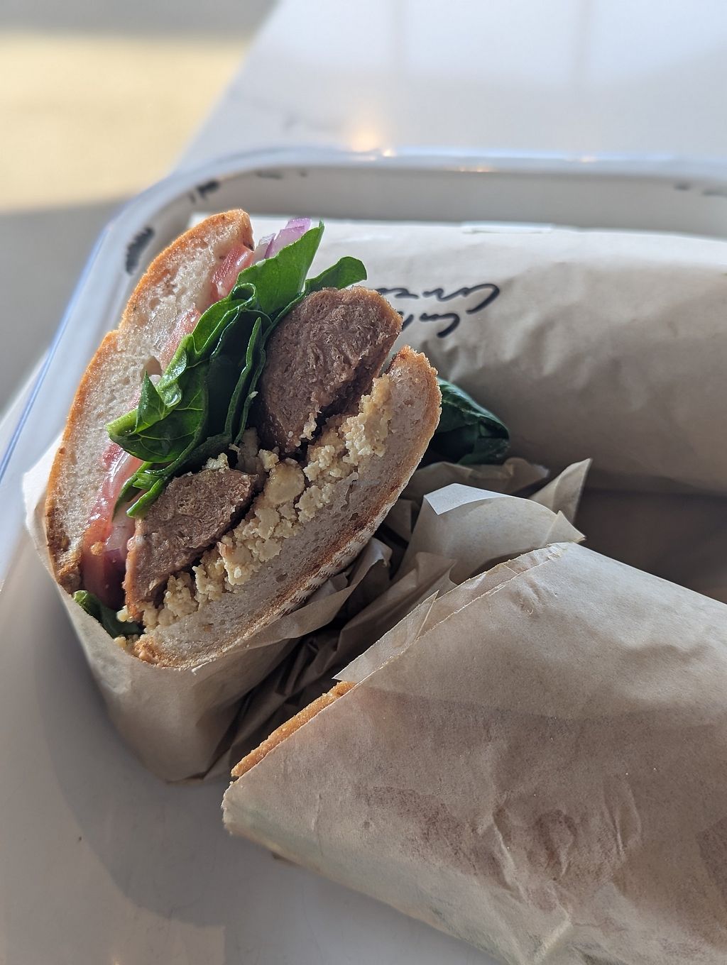 Really nice it just opened in roseville so it’s nice and new lunch spot. Ordered the noble tofu sandwich which was alittle too spicy but tasted good as the bread was really fresh and crispy, also had the chocolate peanut butter muffin and double chocolate walnut cookie with a coffee and they were all amazing! Really busy the day I went but the service was fast and plenty of seating indoors and out!