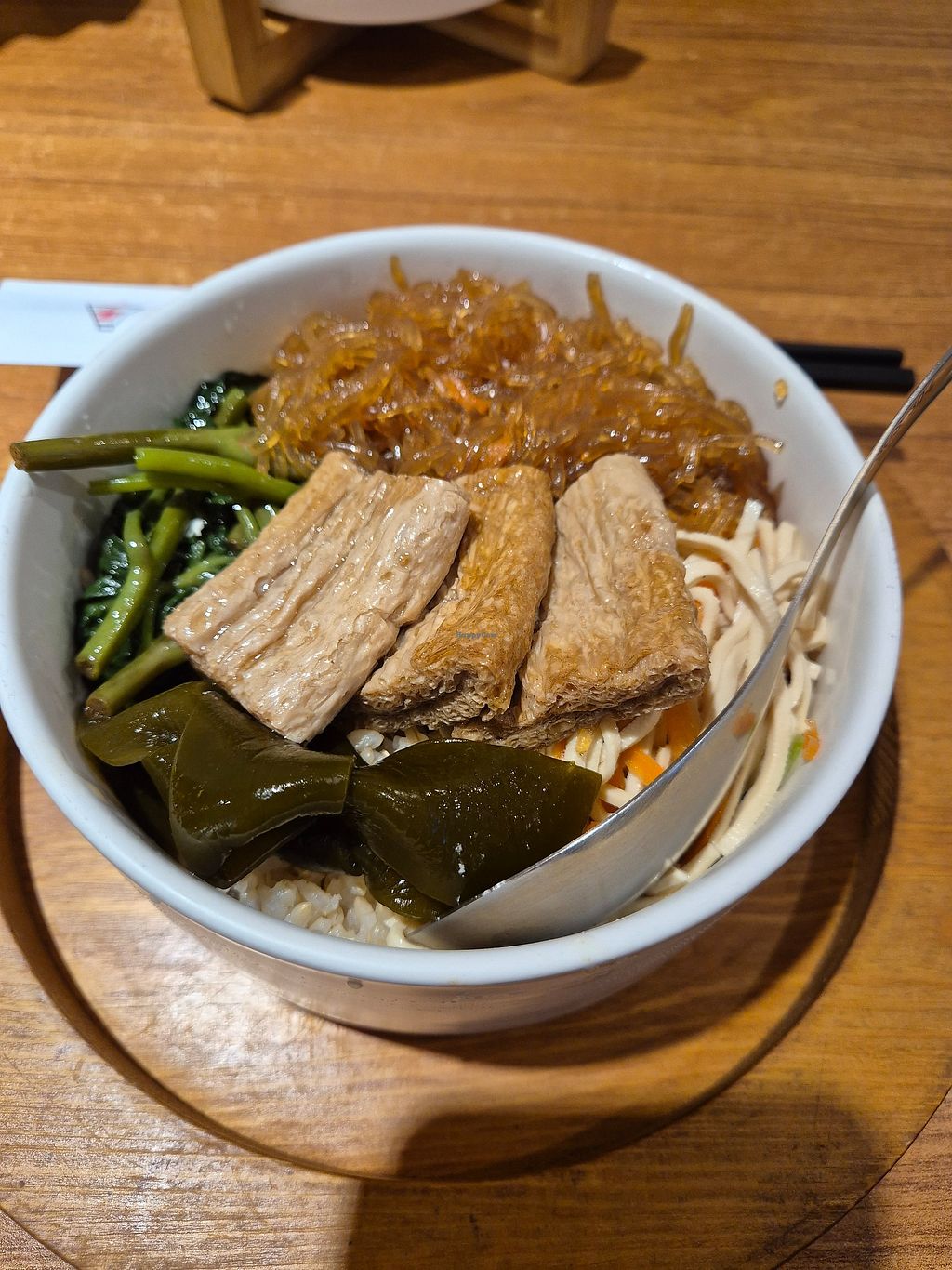 I enjoyed my brown rice and tofu with kimchi. Was not a fan of the chickpea dessert, which was recommended and made vegan (make sure you ask for it without fresh milk). They only accept cash or line pay. #Veganuary