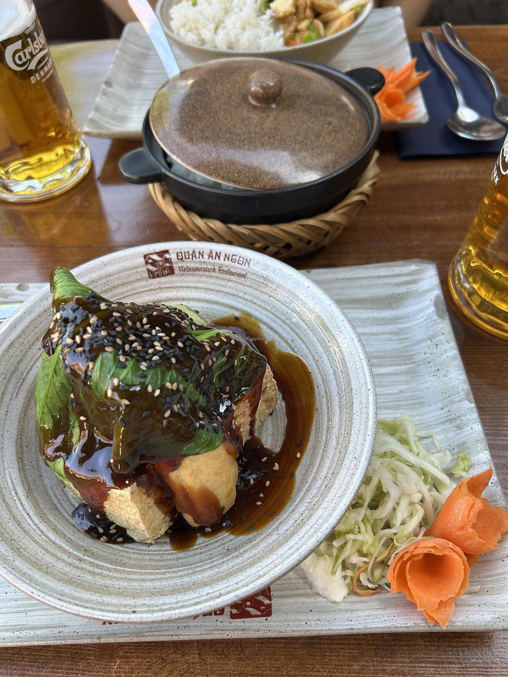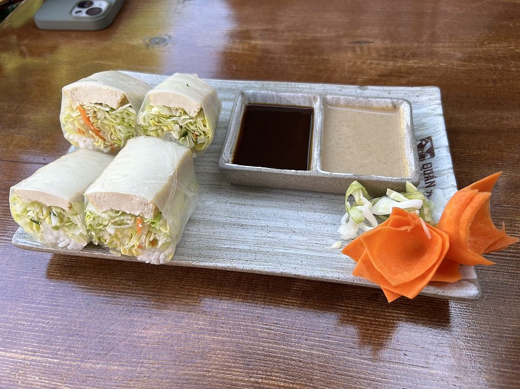 I was a bit disappointed by the vegan dishes. We had the summer rolls and two different main dishes. The summer rolls were stuffed with rice, tofu and otherwise just iceberg lettuce. There were carrots on the side, just put them in there as well, and maybe some cucumber, mango, anything else but not just lettuce.