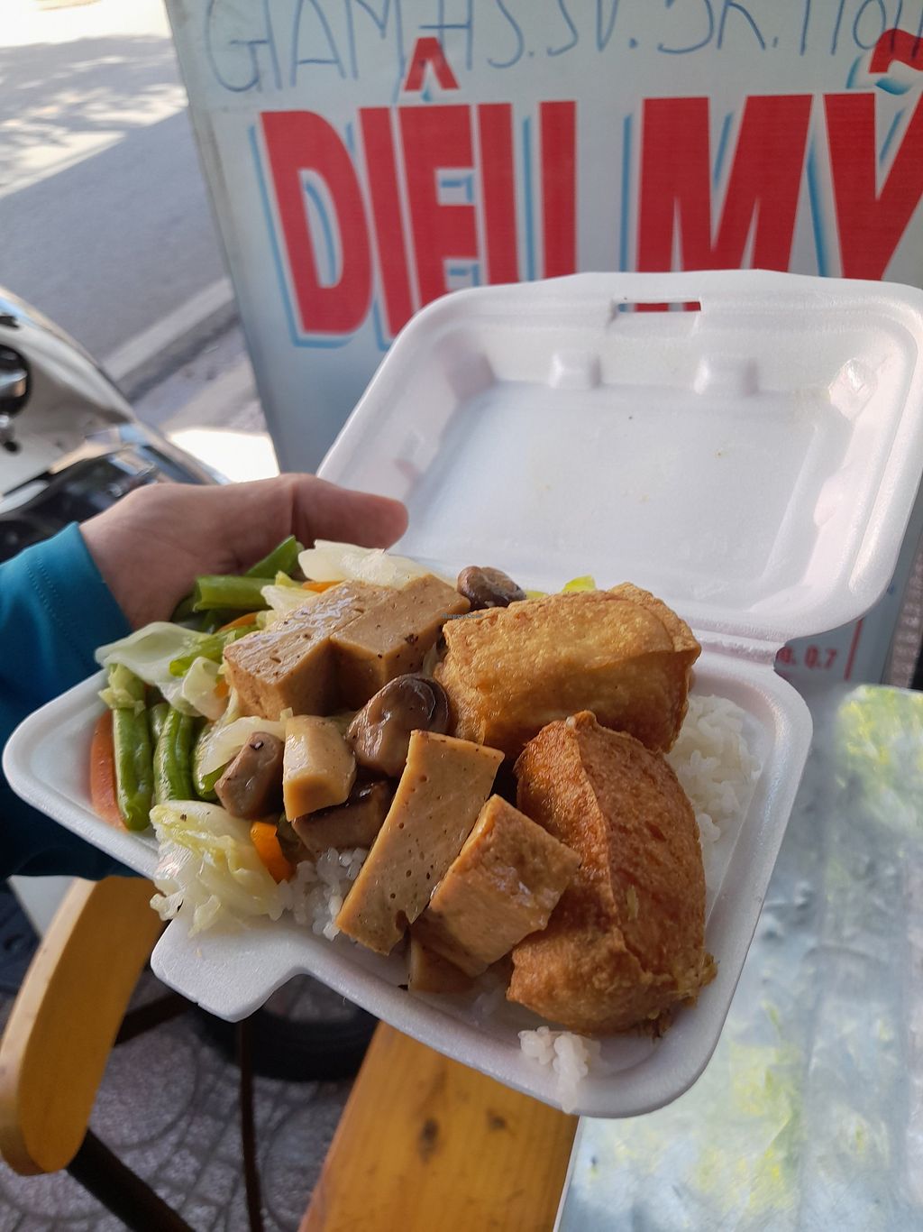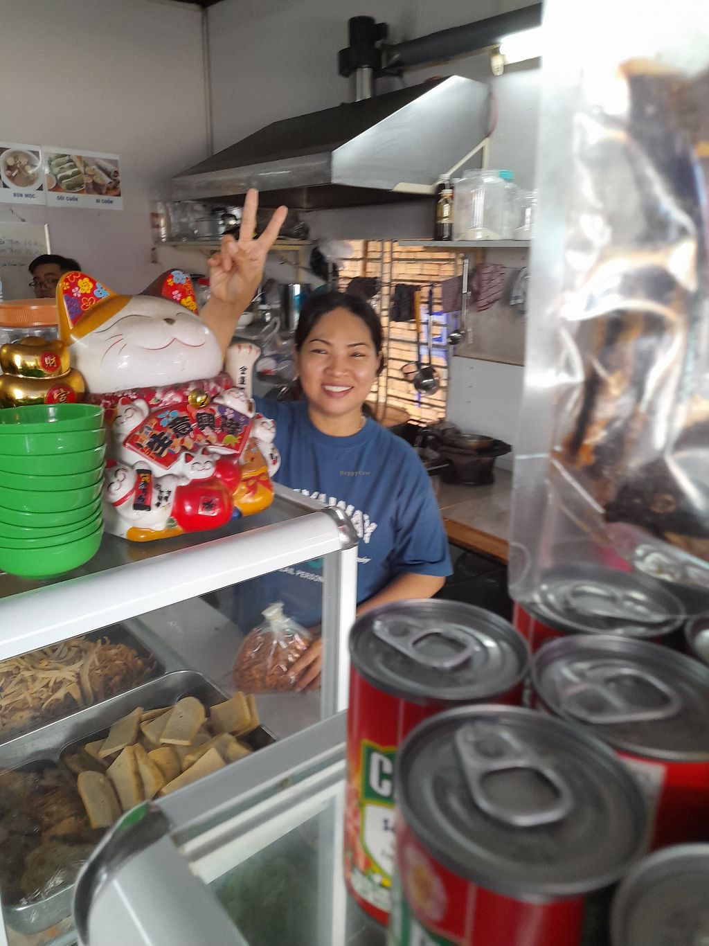 Found this all vegan restaurant by chance. Was actually looking for another vegan restaurant. That was not to be found. Saw this one on the way to another place. I saw a big Chay sign outside. Slammed on my bicycle's brakes. Stopped here. Very friendly staff. One guy can speak English. Plenty of food and drink options. All vegan including many plant based milks. I opted for the Vietnamese iconic fast food option....a glorious com chay. At only 25.000 Dong too! They have plenty of seating outside. Not much inside. There are some pictures of their food if you aren't sure of Vietnamese vegan cuisine. Payment by cash or bank transfer only.