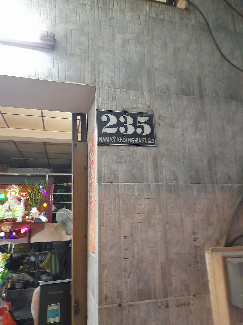 Located on busy NKKN street in district 3 - real HCMC ambiance! The woman who works there is lovely and food is really simple and cheap, a typical com chay type of place.
