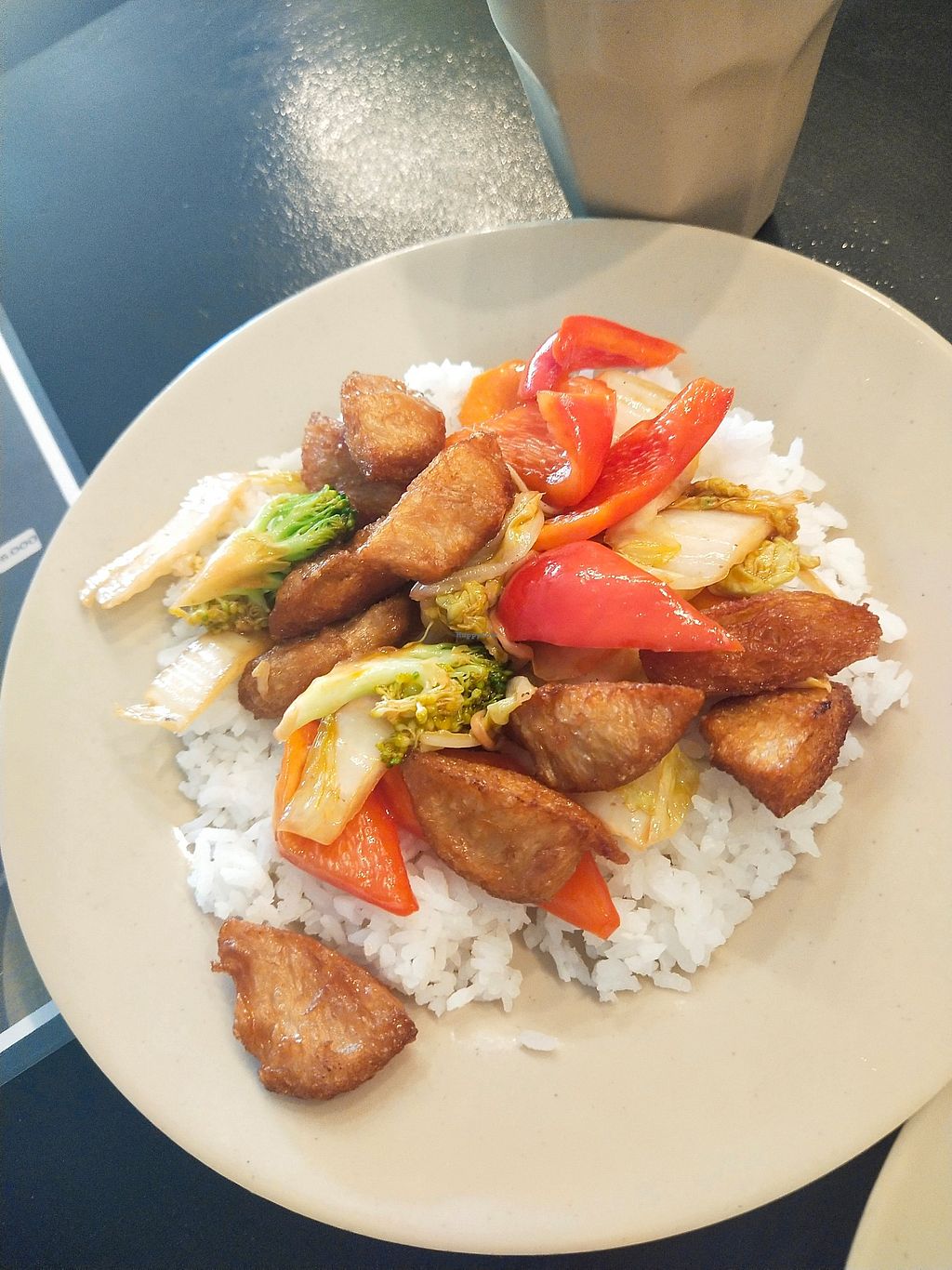 Est. Nov. 2023. (Possibly 100% vegan. Please send HappyCow an update.) Iced teas are free. Has starters. Rice or noodles with mushroom shitakei, tofu pan fried, soy burnt vegan fish and vegetables. NOTE: Maybe closed December 2024- please send updates to HappyCow. Open Mon-Sun 6:00am-9:00pm.