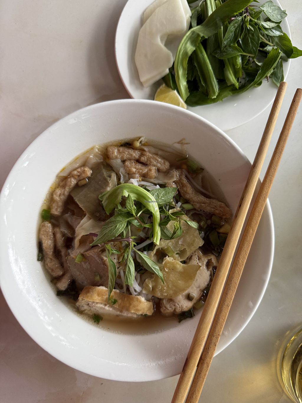 This place is listed at vegan, but serves dairy in coffee (asked HC to update restaurant to vegetarian). It’s very likely the food is vegan, as it’s a Vietnamese Chay restaurant. Limited English is spoken so we didn’t ask (other than the coffee).