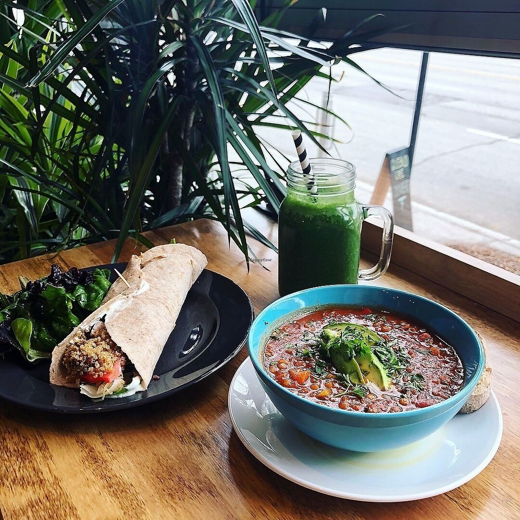 Wrap tofu, quinoa et tempeh, Chili avec pain et beurre végétalien, Smo…