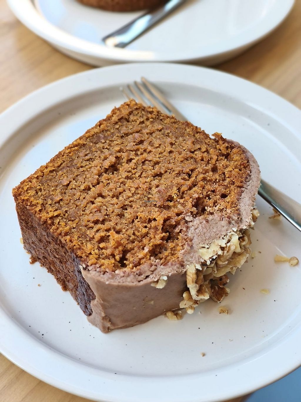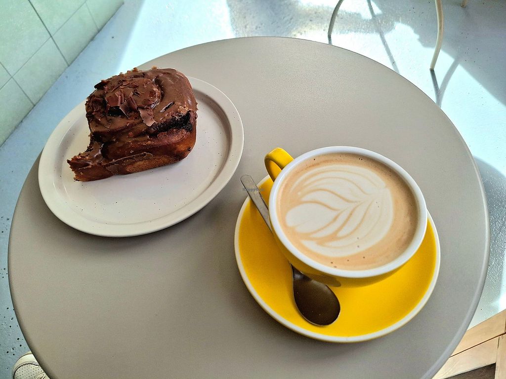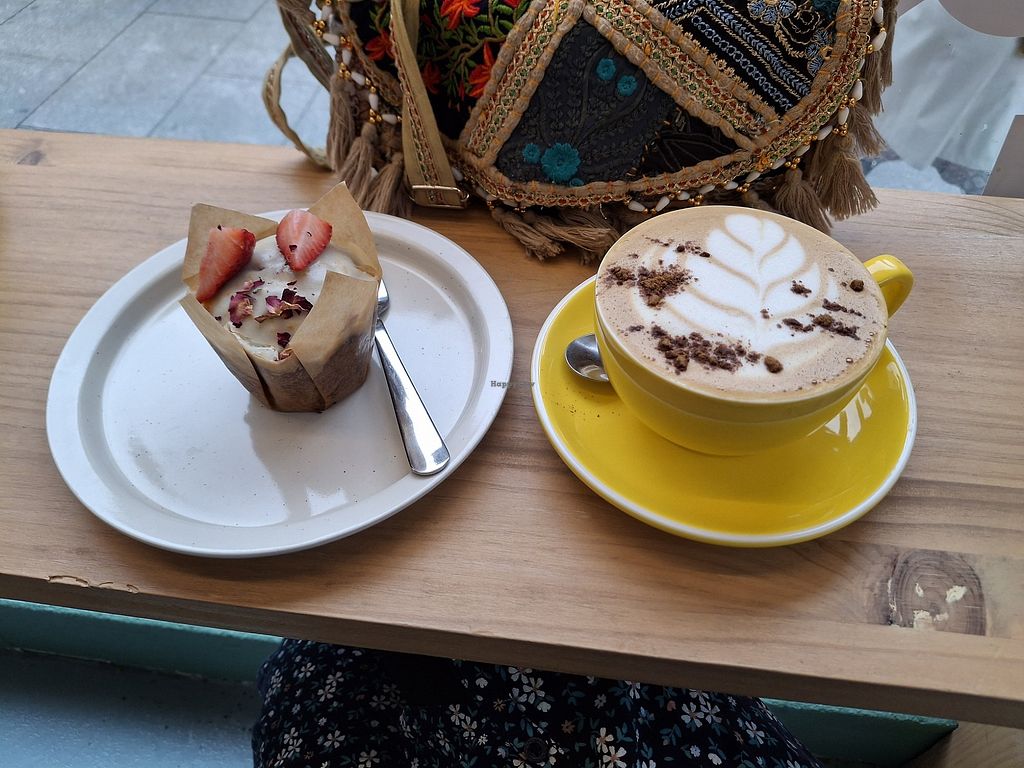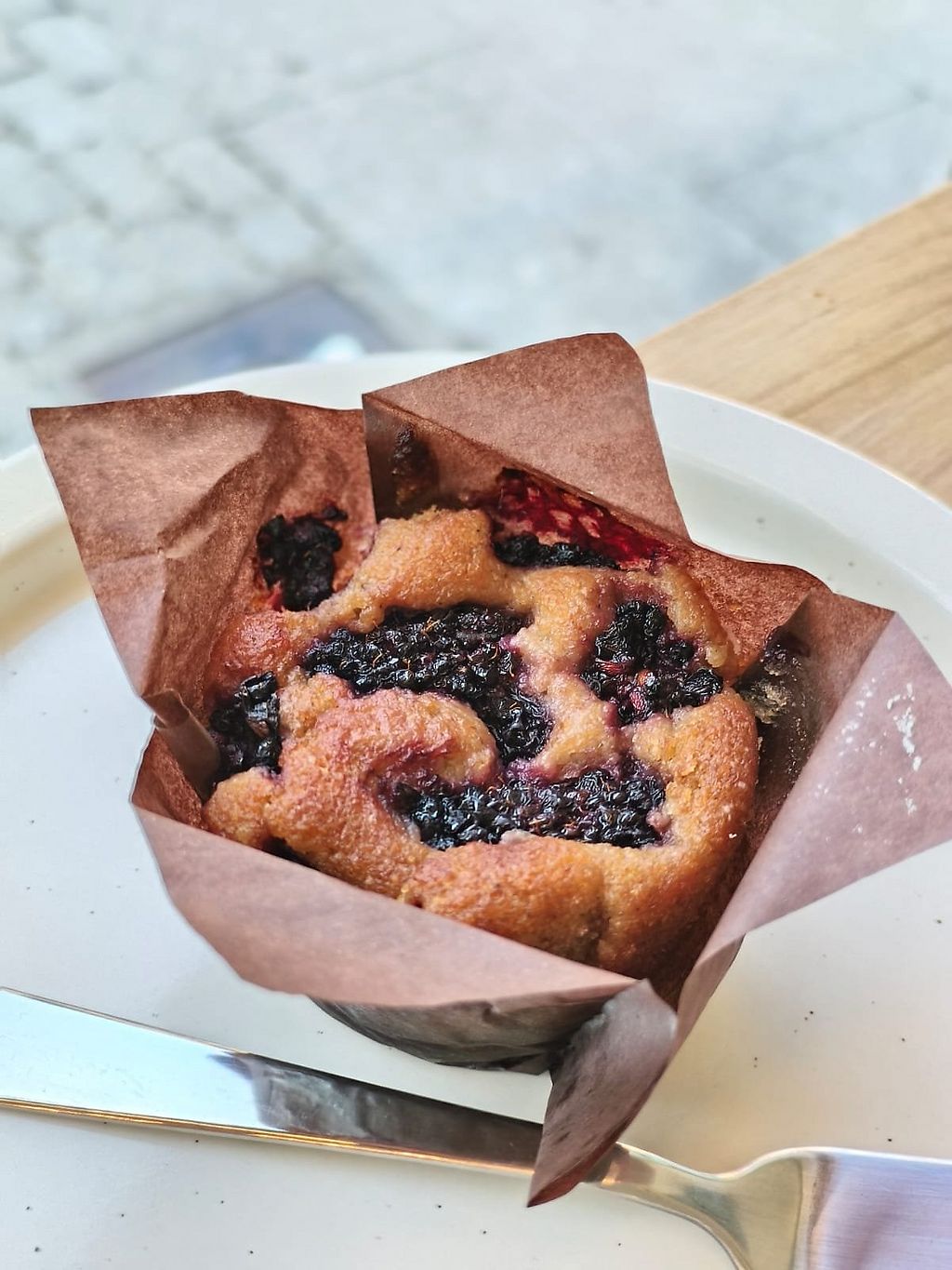 It's a super cute Cafe full of vegan pastries. Coffee was delicious (same goes for the sweets we had). We ate the carrot cake, the chocolate cookie and the blueberry and blackberry muffin. Everything was a 10/10. They allowed us to go inside with the dog and the guy working there was really nice.
