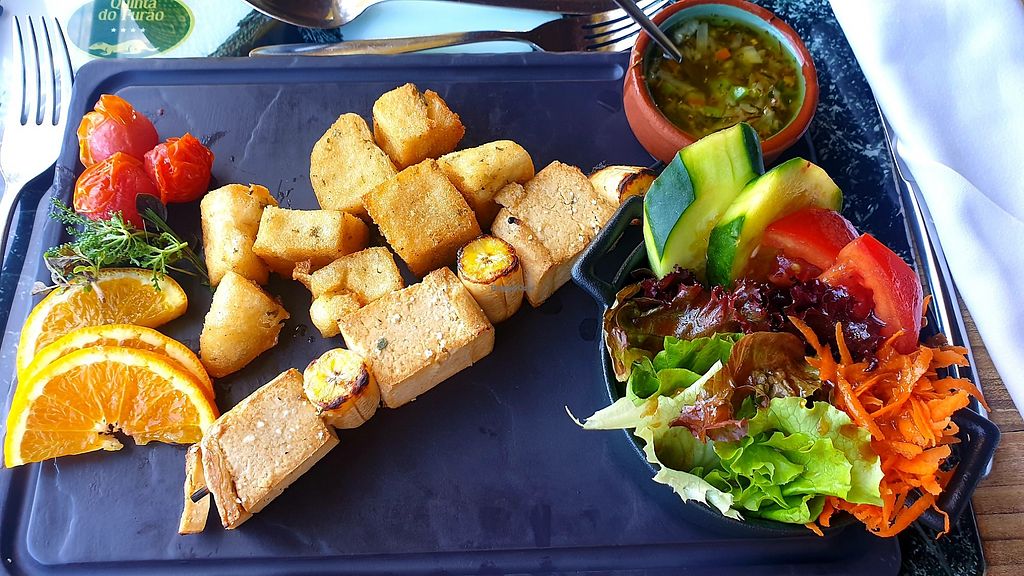 The vegetarian dishes could be made vegan by request, the staff was helpful. The Quinta is beautiful and you have an awesome view from the terrace!