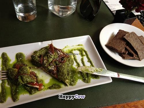 I always want to like raw food more than I end up liking it. To be fair, I went here a few years ago with my sister (whose vegan) when we had a Groupon, so maybe it's changed since then. We had such a poor tasting meal, we literally had to walk down the block and grab more food after the fact to feel satisfied. At vegan restaurants, I usually finish the whole plate of food, since it's not so large; I simply couldn't do it here. I even went with a safe option in terms of ordering, having the pesto pizzette. The flavors just didn't work well together, and I guess I myself am more of a cooked pizza girl.