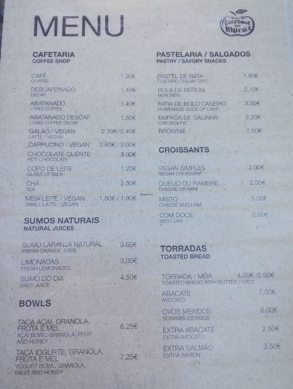 Breakfast menu