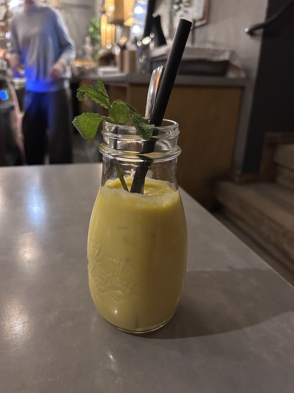 The all-vegan menu includes various dishes and drinks. I had the stuffed "seaweed filet" and a home-made lemonade. Both were very delicious. The team is super friendly and the seats both inside and outside are welcoming.
