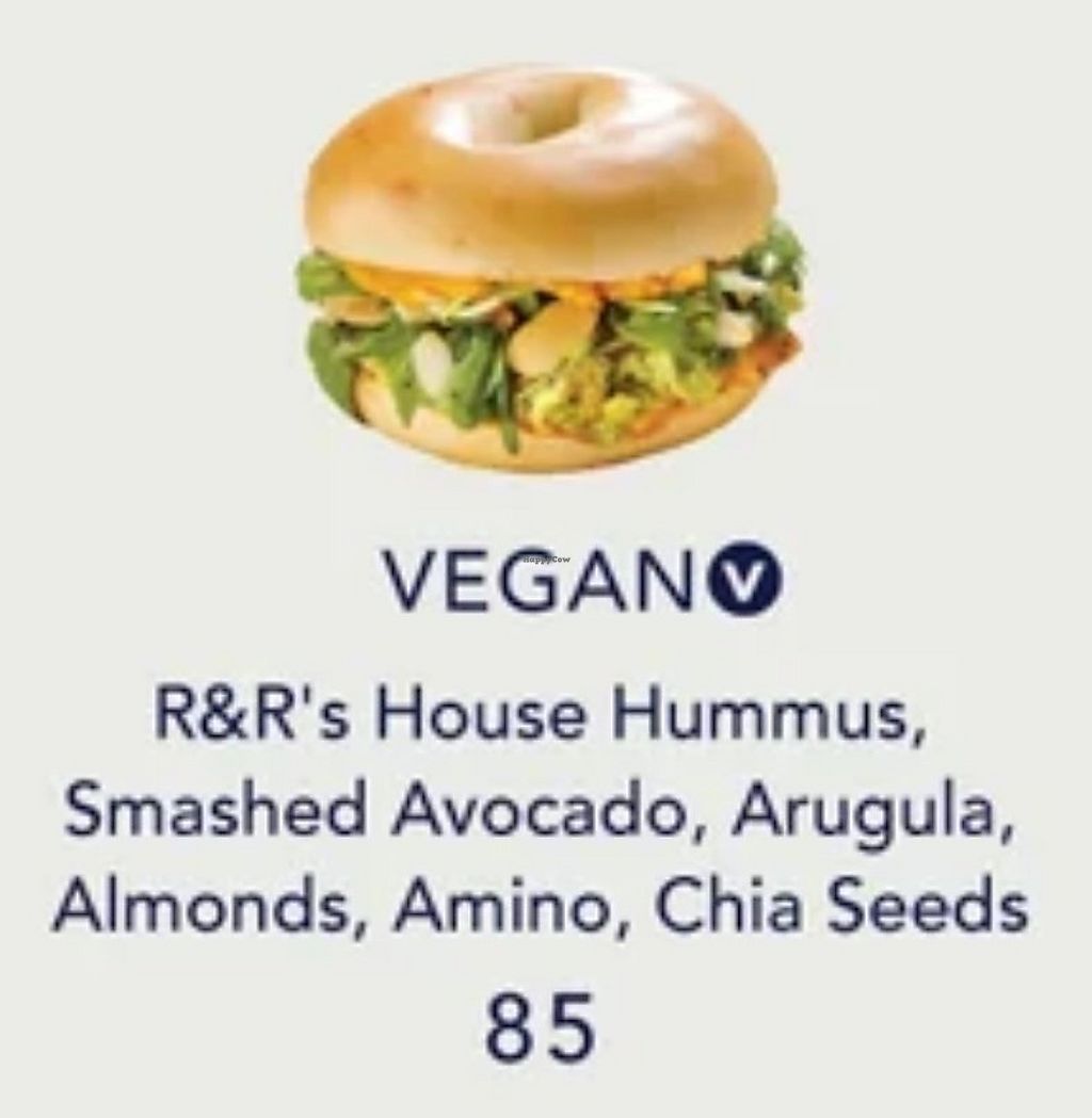 Serves meat, vegan options available. Bagel shop offering two vegan bagels and vegan coffee. Open Mon-Sun 7:30am-5:00pm.