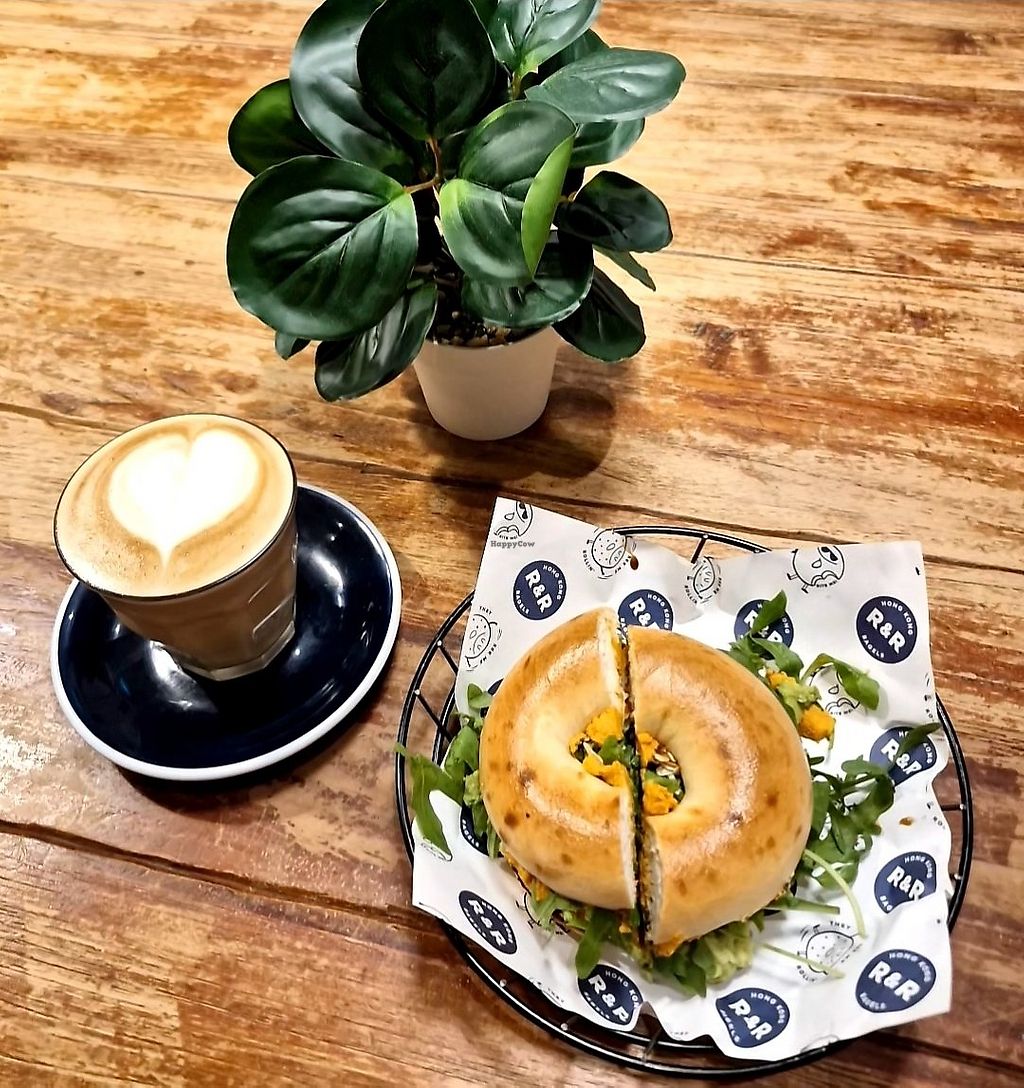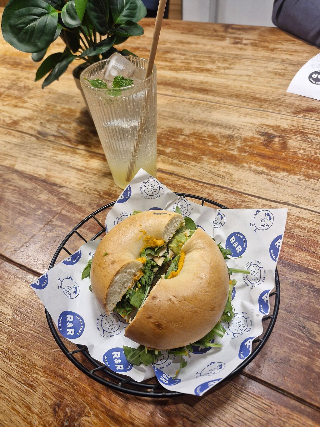 A little hidden, but worth it! Tasty bagels, 1 vegan option & a few more options to veganify. Grrat coffee w oat milk available.