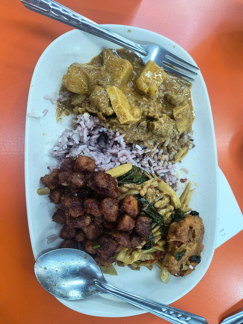 The stall mainly sells rice toppings of your choice, you can choose between veggies, mock meat and curries. I loved all the dishes I tried and would highly recommend this place. Some dishes are quite spicy (but good!).