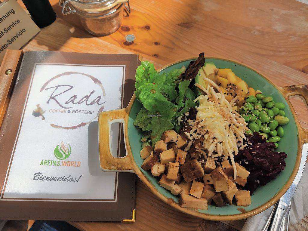 Serves meat, vegan options available. Eatery serving arepas and bowls with vegan options. Vegan choices include black beans, tofu, and vegan cheese. Located inside of Rada Coffee & Roesterei. Has indoor and outdoor seating. Previously called Arepas World Heidelberg. 100% gluten-free with German certification. Open Mon-Thu 11:30-18:00, Fri-Sat 11:00-19:00, Sun 11:00-18:00.