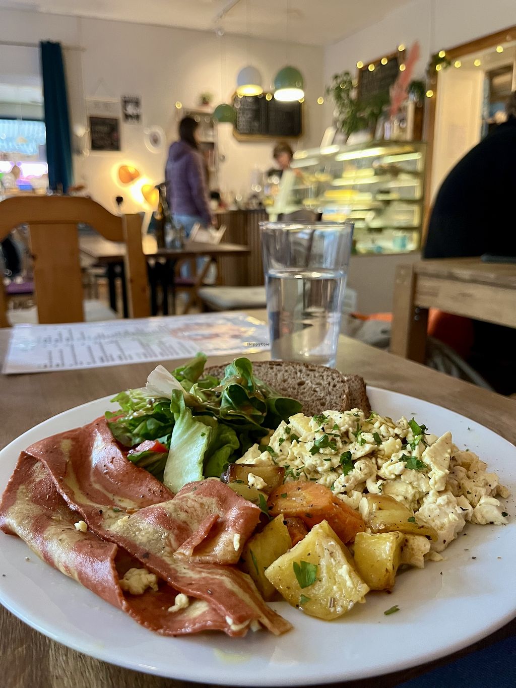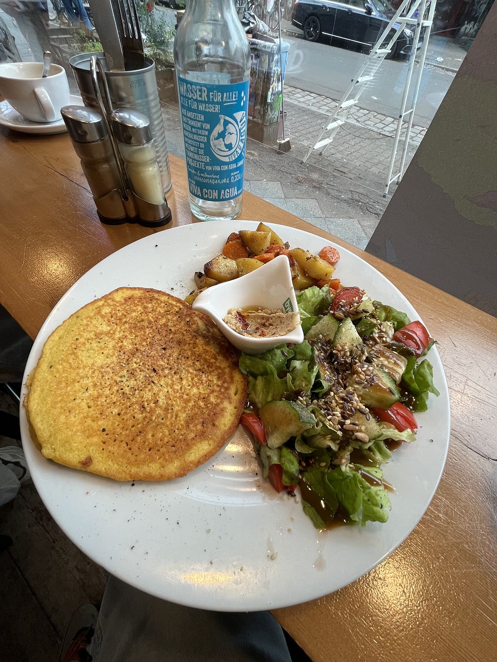 Super Auswahl für herzhaftes Frühstück, als Café für den Rest des Tages und spätere Speisen sicherlich auch zu empfehlen.