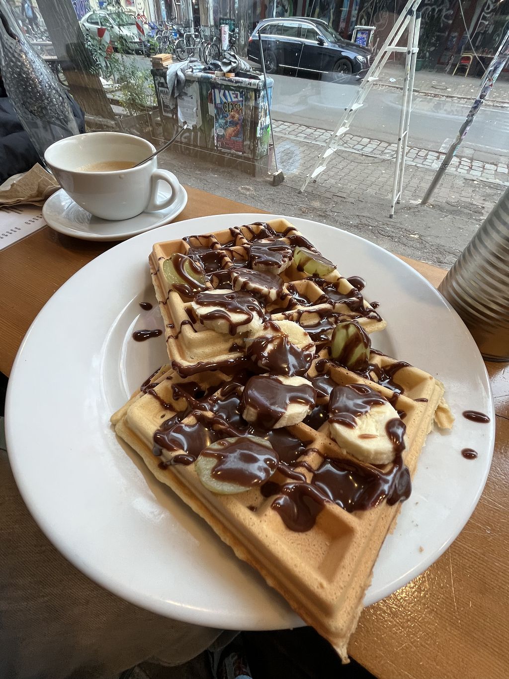 Read moreI had the NYC cheezecake and Karamell coffee, which I would give 3.5 stars. It tasted like a wfpb recipe, which is on the healthier side but also more ‚earthy’ than I personally like. The coffee was a little bitter as I don’t like to use sweeteners. Would definitely come back though and keen to try the waffles or one of the many savoury dishes.
